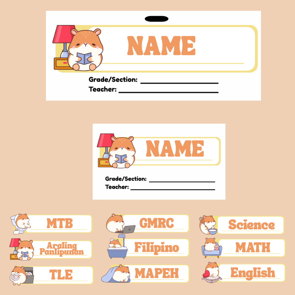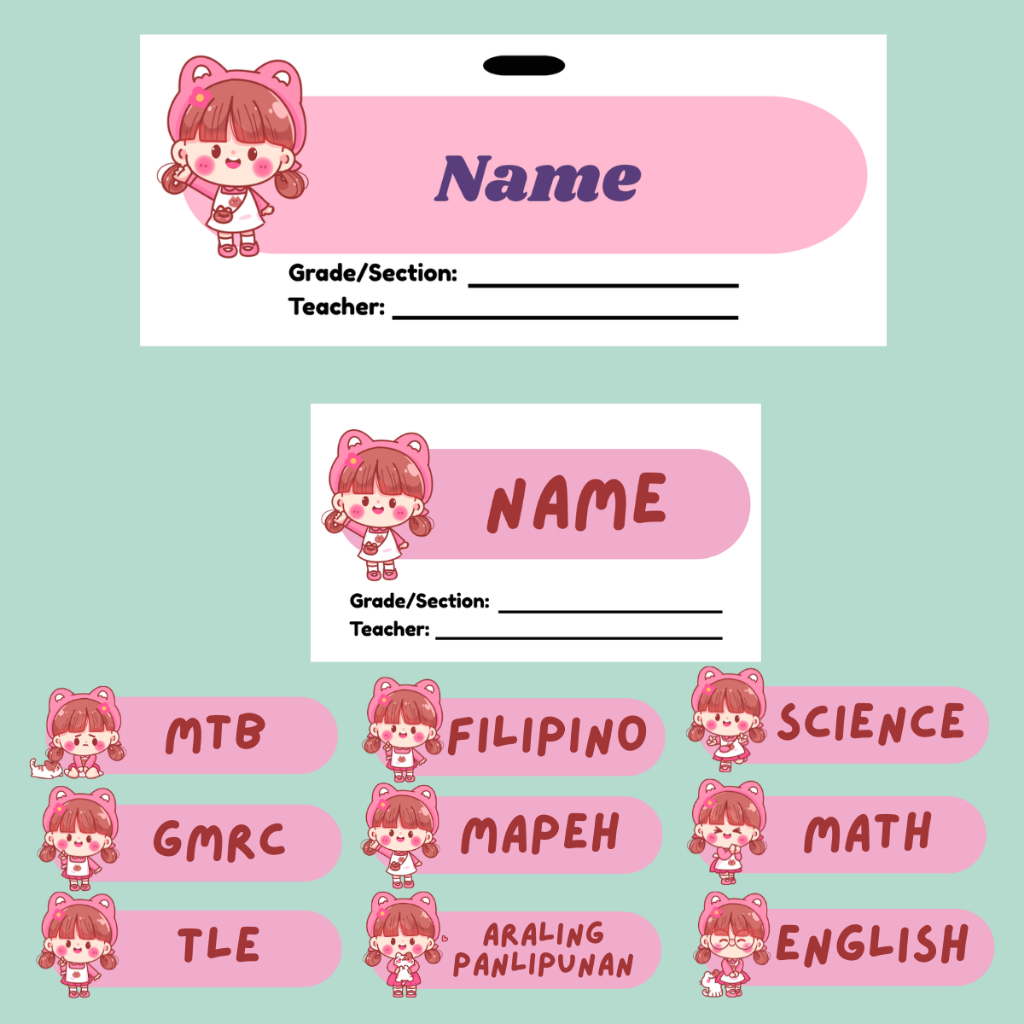 Complete Set of NAME TAG, NAME LABEL, and SUBJECTS STICKERS