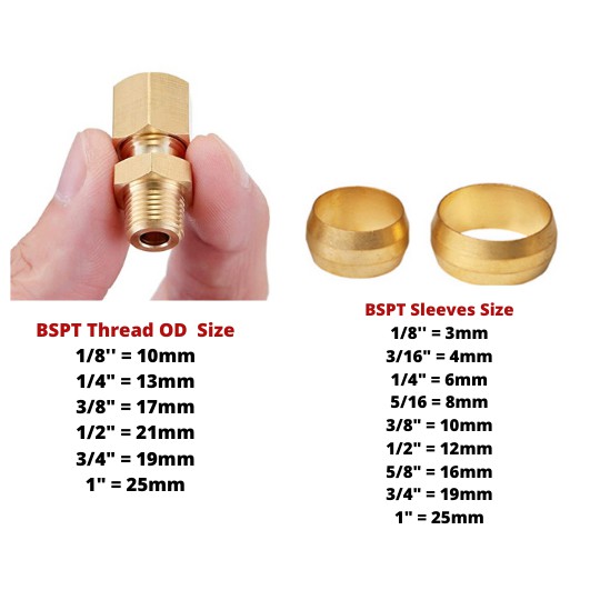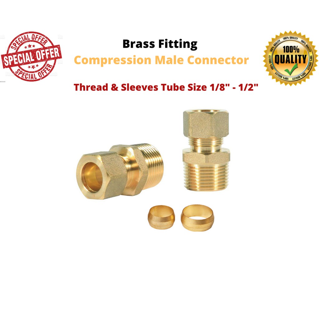 Compression Male Connector Brass Pipe Fitting Copper Pipe Connector (Thread And Sleeves BSPT)