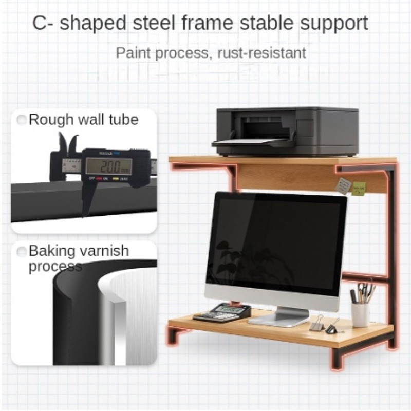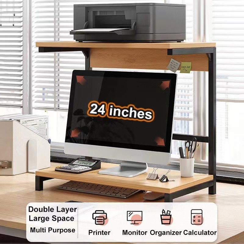 Computer Desk Stand with Printer Double Layers Wooden Monitor Stand Printer Stand Printer table rack