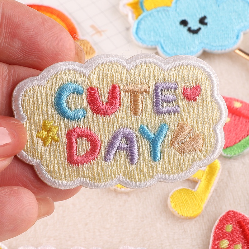 Computer Embroiders Self-Adhesive Patches The Animated Cartoon Rainbow English Letters Music Notation Patch Stick Hand Book DIY Adhesive Buiter For Toys