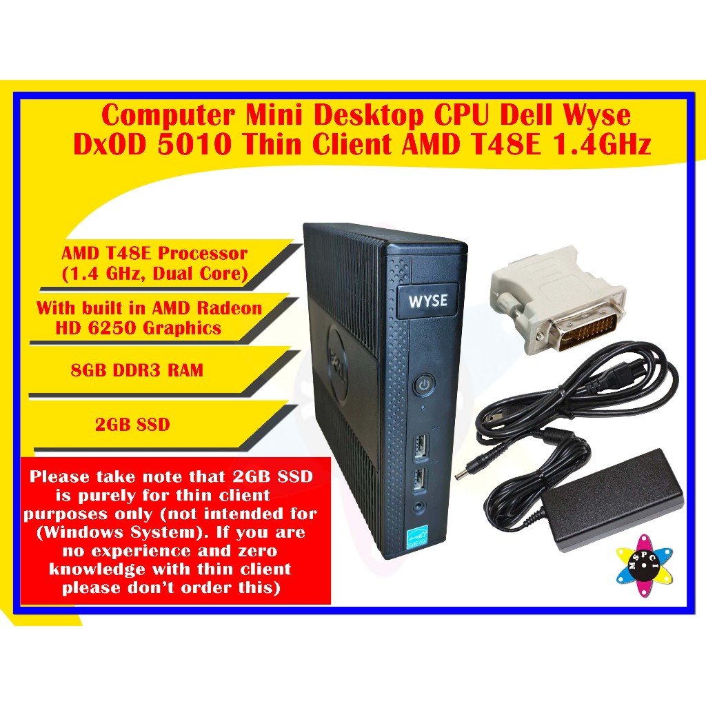 Computer Mini Desktop CPU Dell Wyse Dx0D 5010 Thin Client AMD T48E 1.4GHz 2GB RAM 2GB SSD (Used)