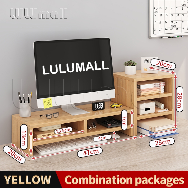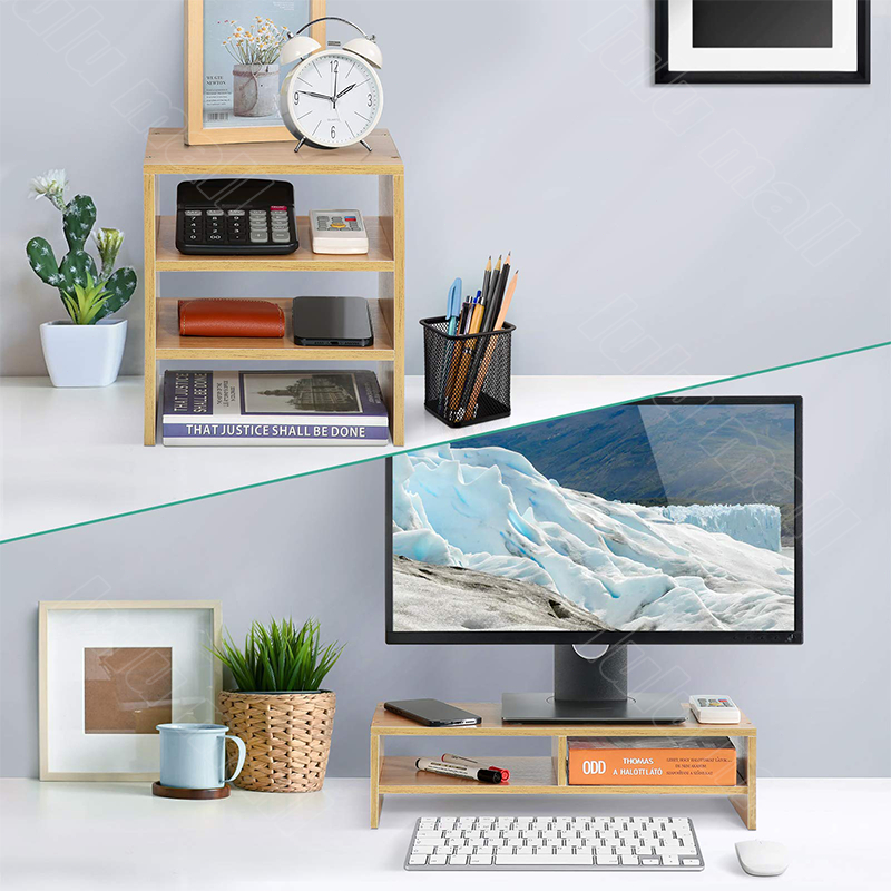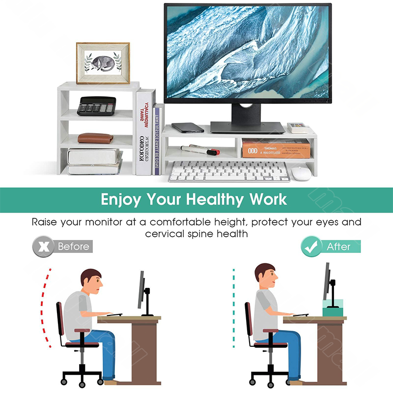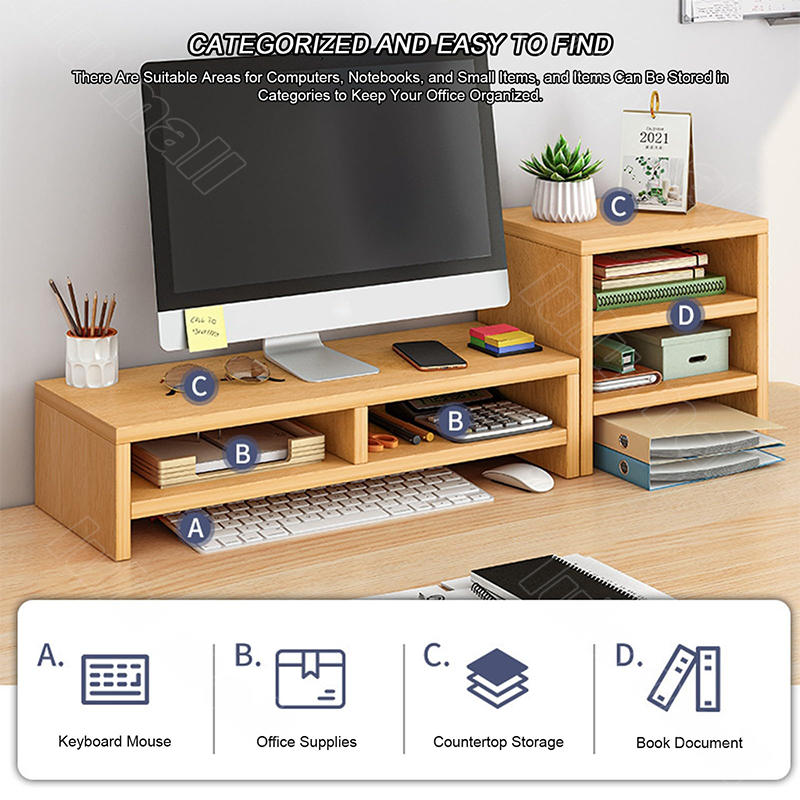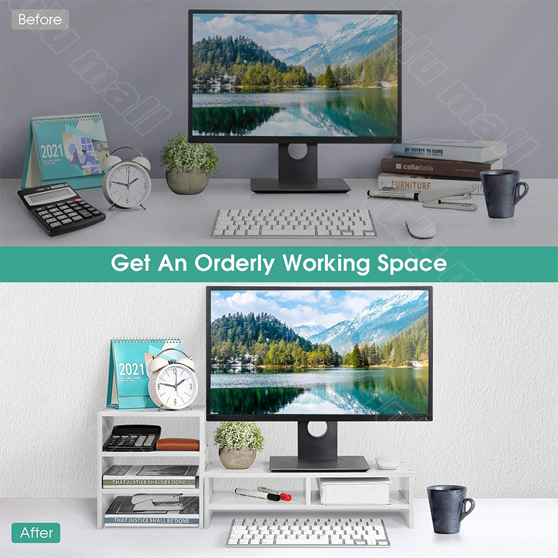 Computer Monitor Stand Riser with Drawers,Wooden Desktop Storage Organizer Monitor Risers Shelf