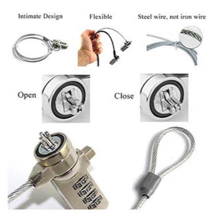 Computer Security Lock Laptop Cable Lock Zinc Alloy 4 Digit Security Password Computer Lock Laptop With 1.1m Cable Waterproof