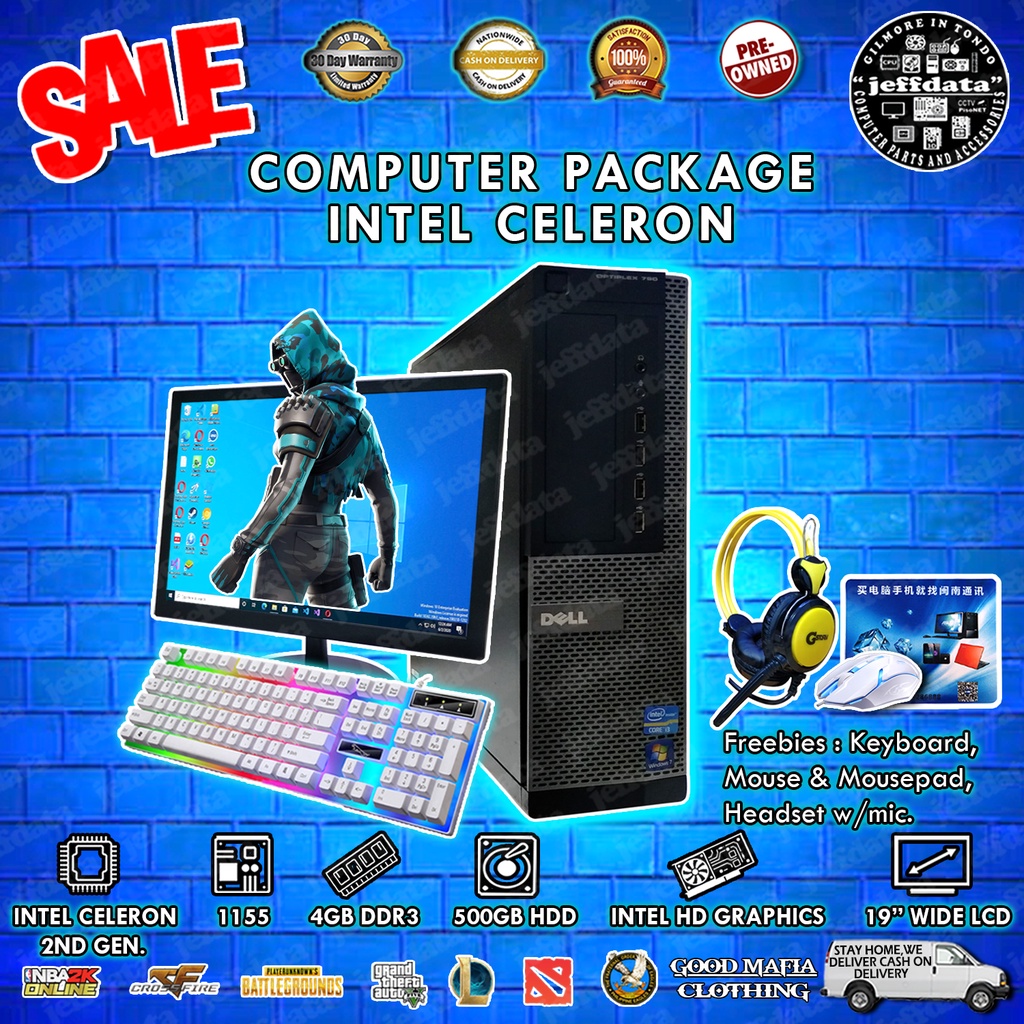 Computer Set Dell or Fujitsu Cpu intel Celeron 2nd gen 4gb 500gb 20w LCD Keyboard,Mouse & Headset