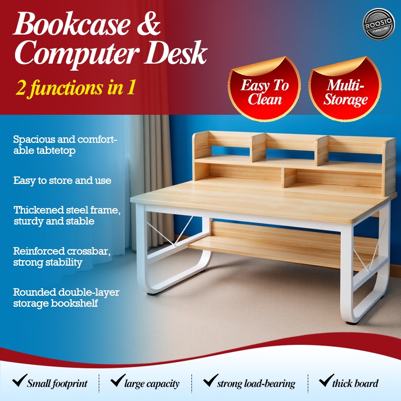 Computer Table with Book Shelf Desktop Table Computer desk with Shelves study desk Solid Wood