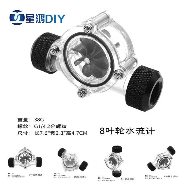 Computer Water-Cooled Water Flow Meter Flow Meter 8 Impeller Water Flow Meter Monitor Rotor G1/4 2 Points Thread