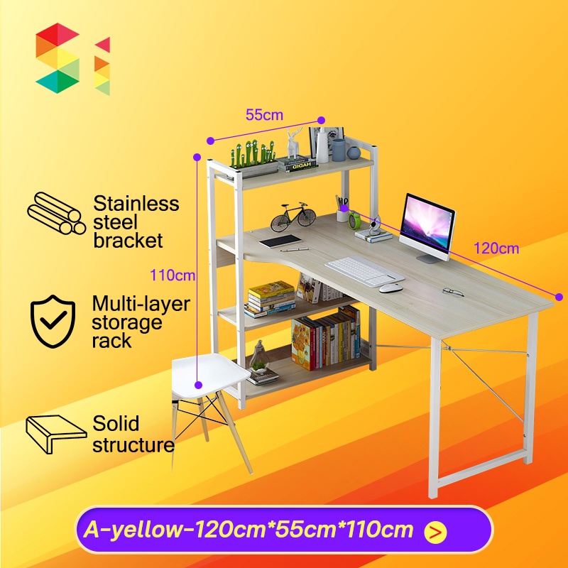Computer desk with bookshelf Multi-layer storage shelf 120*55cm large size office desk