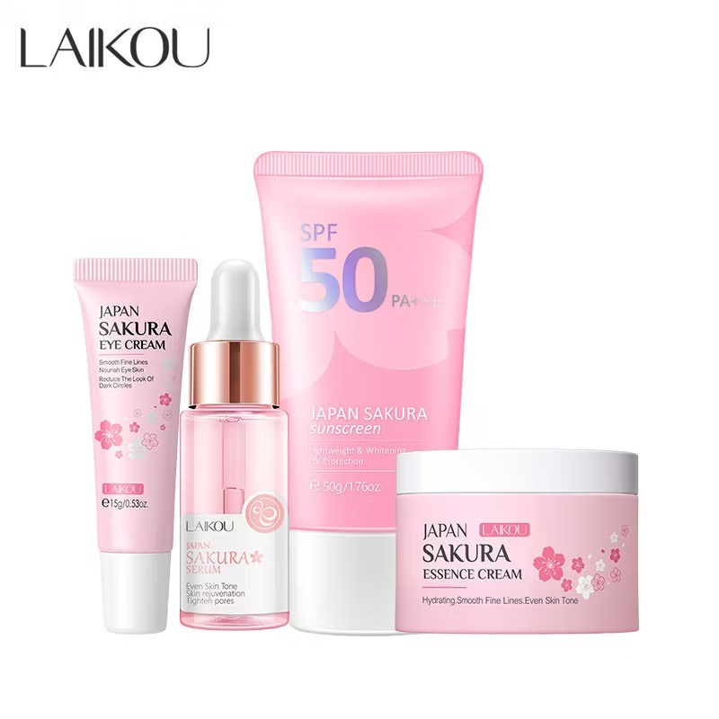 【LAIKOU】 4pcs/set Sakura Sunscreen Rejuvenation Serum Remove Wrinkle Eye Cream SPF50