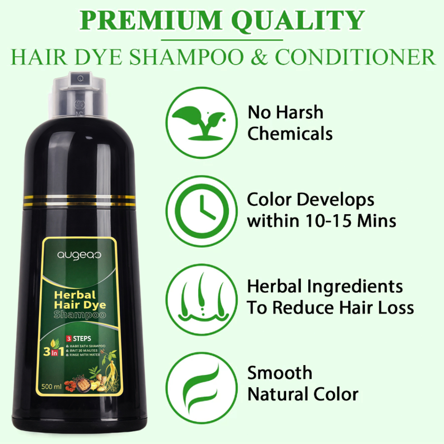 [3 STEPS]Black Shampoo Natural Black Hair Dye Shampoo Gray Coverage Herbal Ingredients Instant Hair 500ML