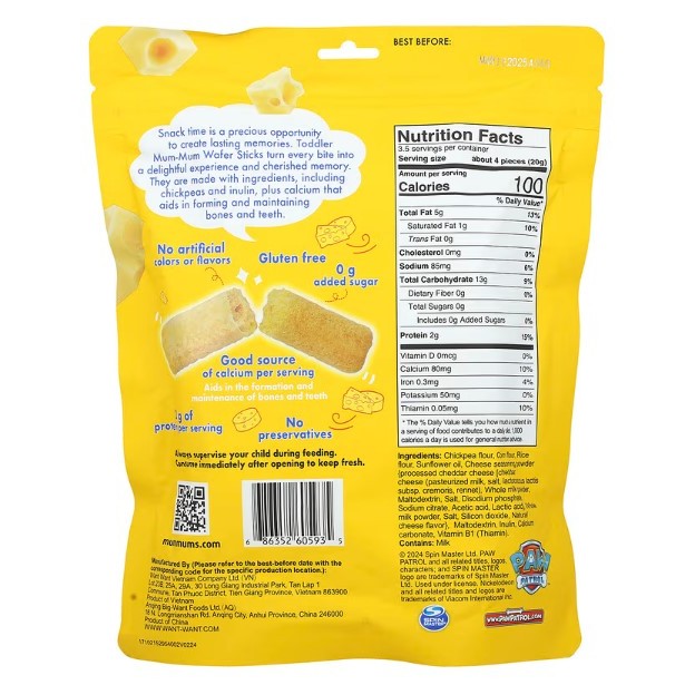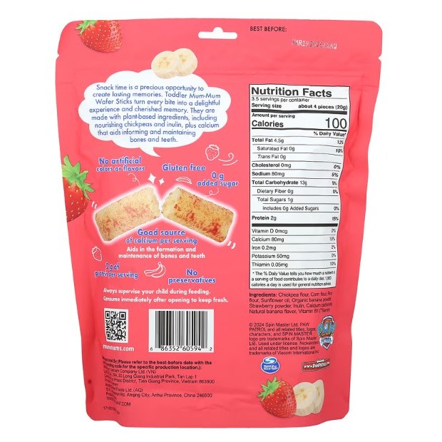 BabyTummy | Hot Kid, Toddler Mum-Mum®, Wafer Sticks, Paw Patrol Cheddar Cheese & Banana & Strawberry
