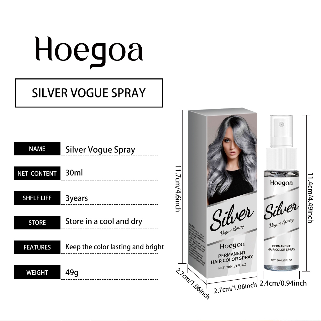 Hoegoa Permanent Hair Color Spray 30ml Silver Grey Hair Dye Spray Temporary Hair Color Spray