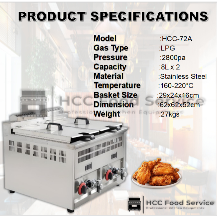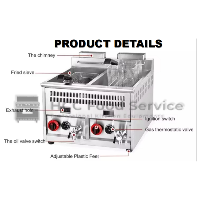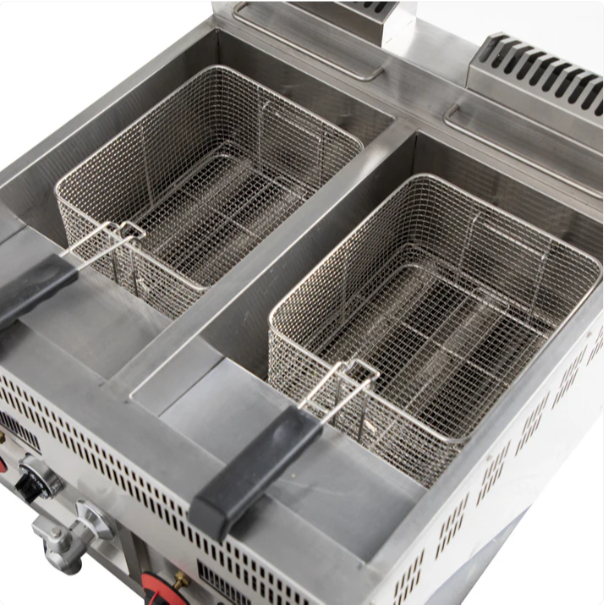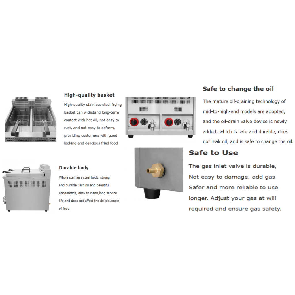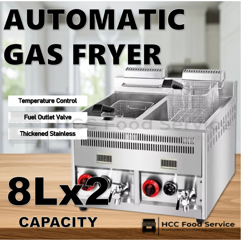 Commercial Gas Fryer Thermostat Controlled Automatic Fryer 8Lx2 Capacity,with flame out protection d