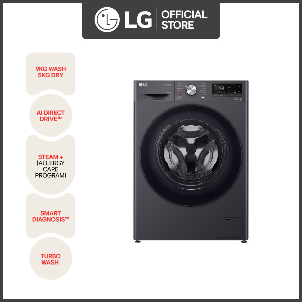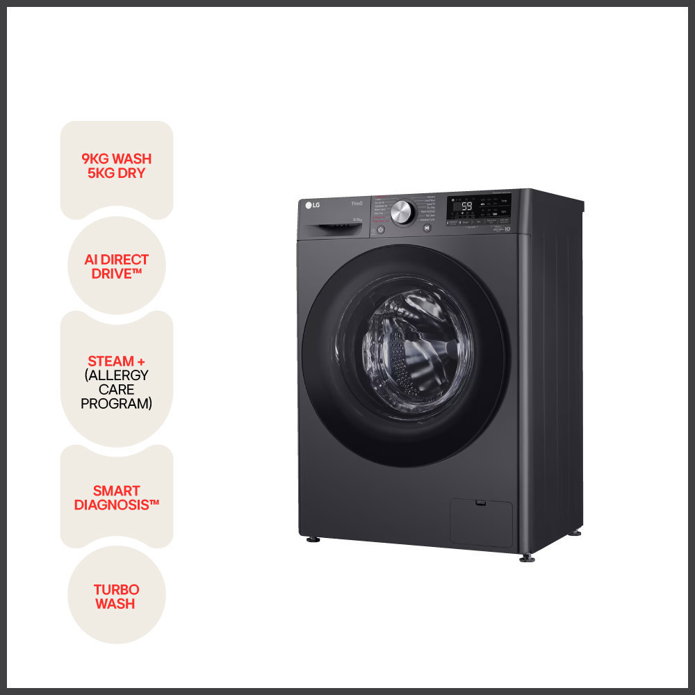 LG Washing Machine - 9/5kg Front Load Washer Dryer with AI Direct Drive™, Steam™ FV1209D4M