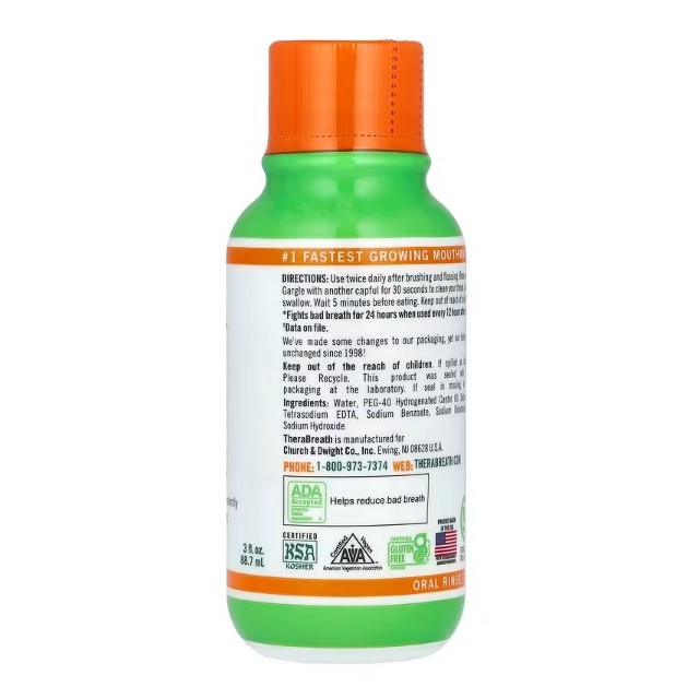 LowCostPH | TheraBreath, Fresh Breath Oral Rinse, Mild Mint, 3 fl oz (88.7 ml) Dentist Formulated