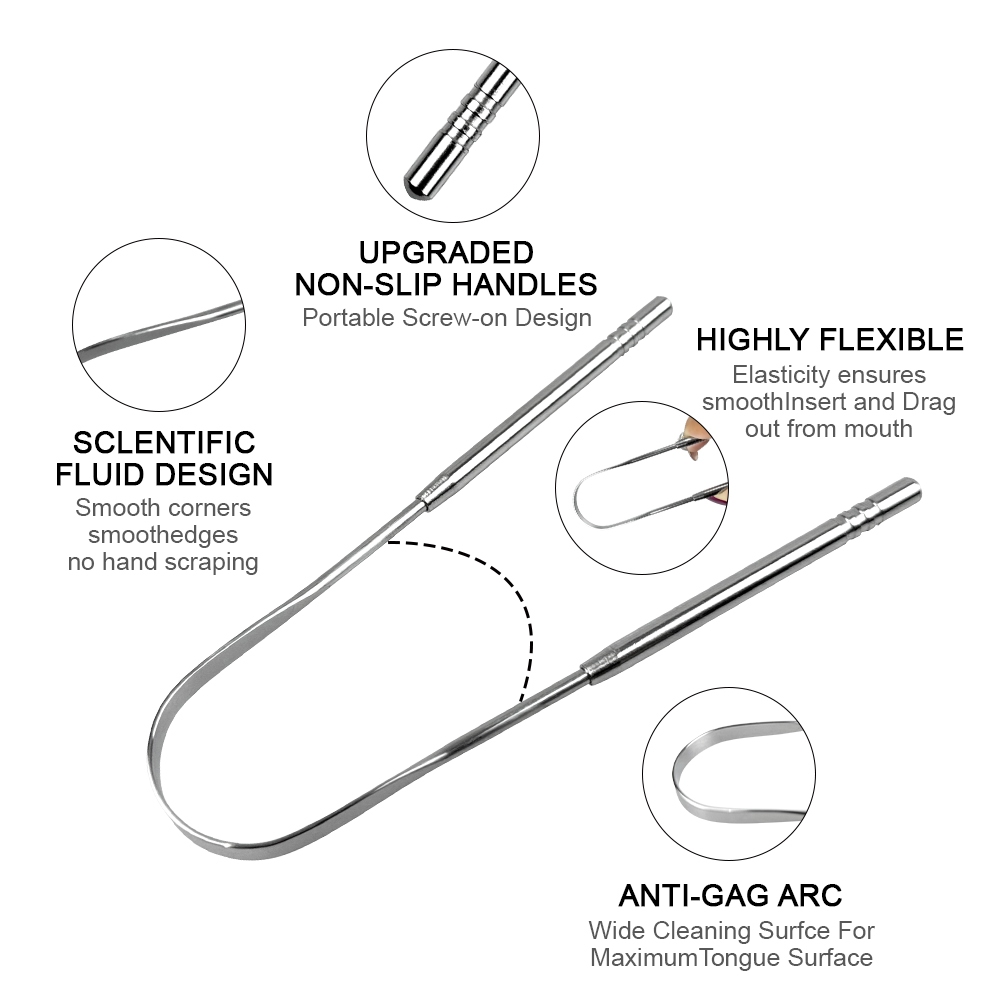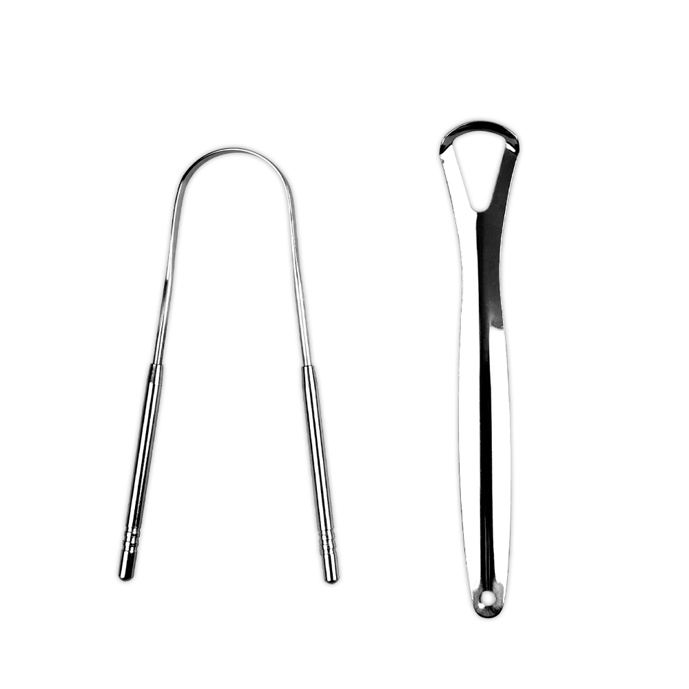 2 Pcs/set Steel Tongue Scraper Metal Brush Dental Kit Tongue Cleaner