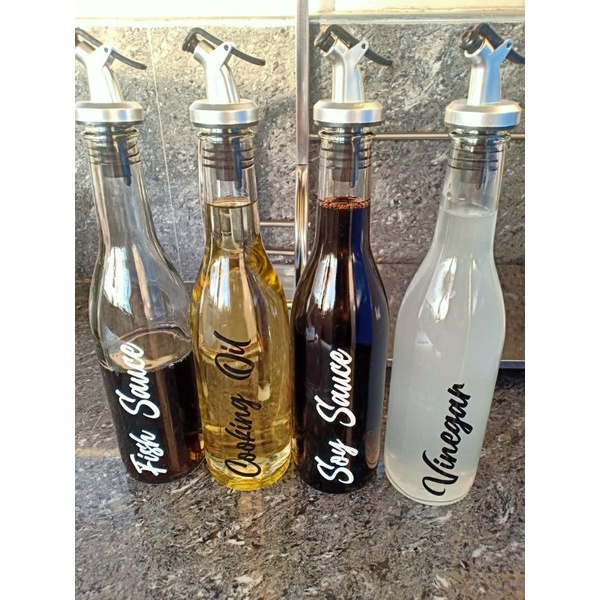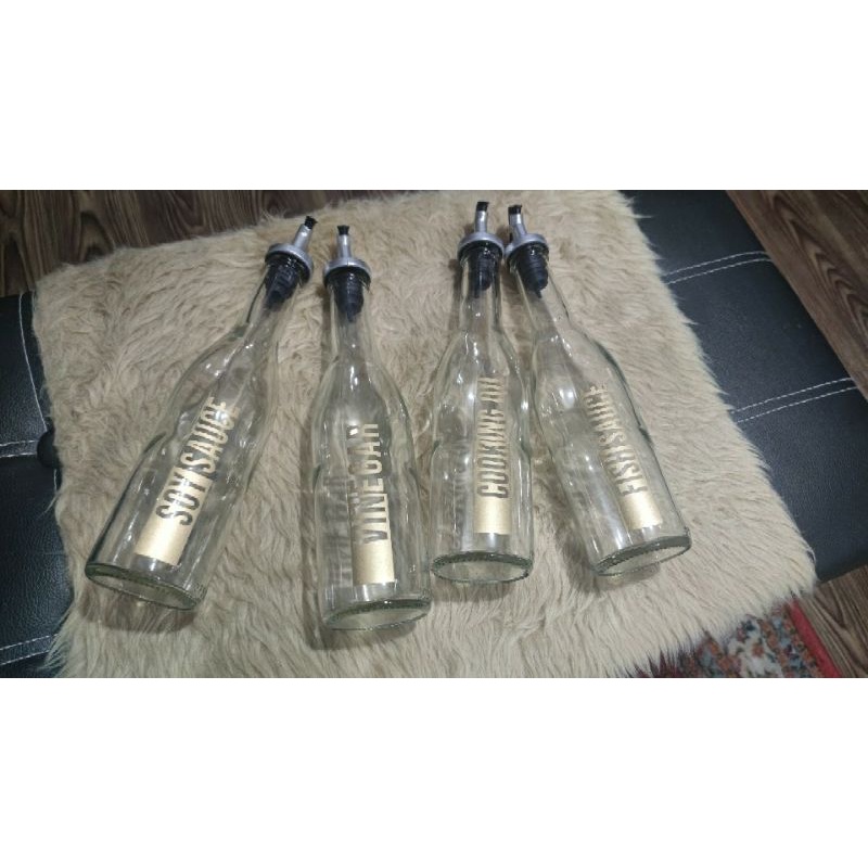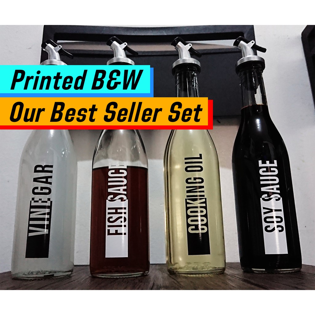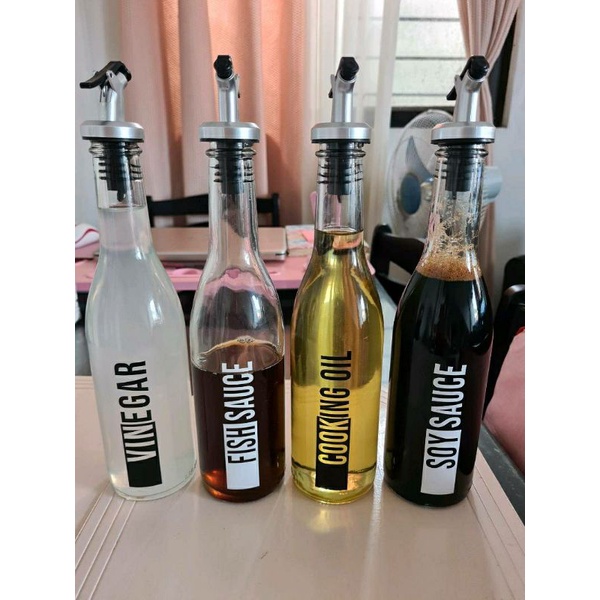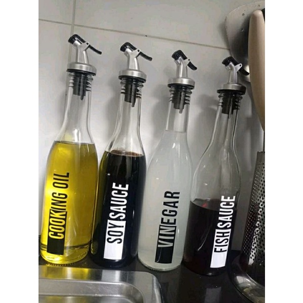 Condiments Bottle Glass Set Dispensers Organizer with flip top Nozzle Stopper Flip Cap