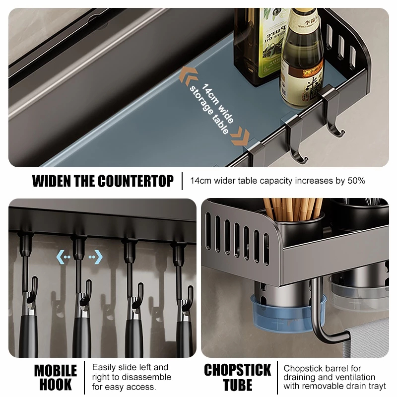 Condiments Organizer Utensils Spice Rack with Hook Kitchen Rack Wall Mounted Chopsticks Knife Holder