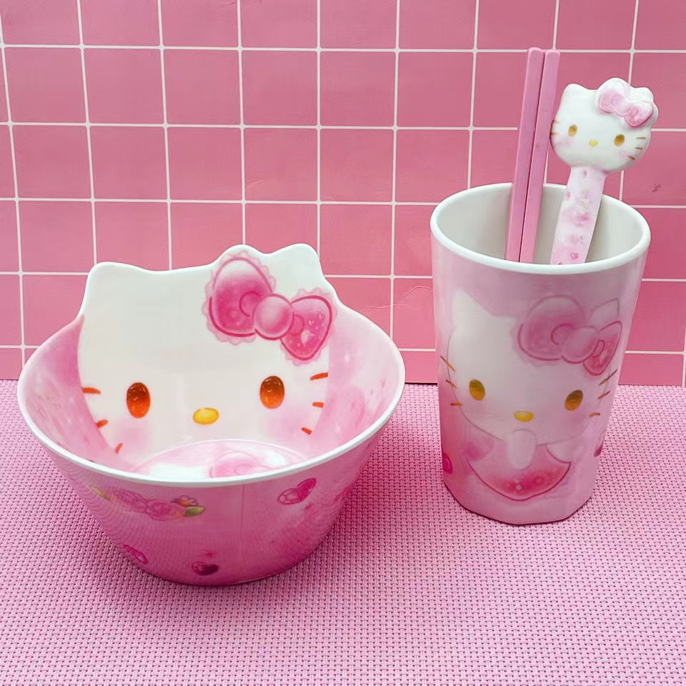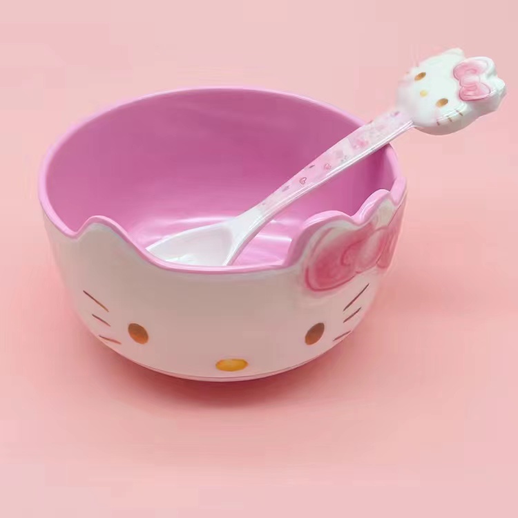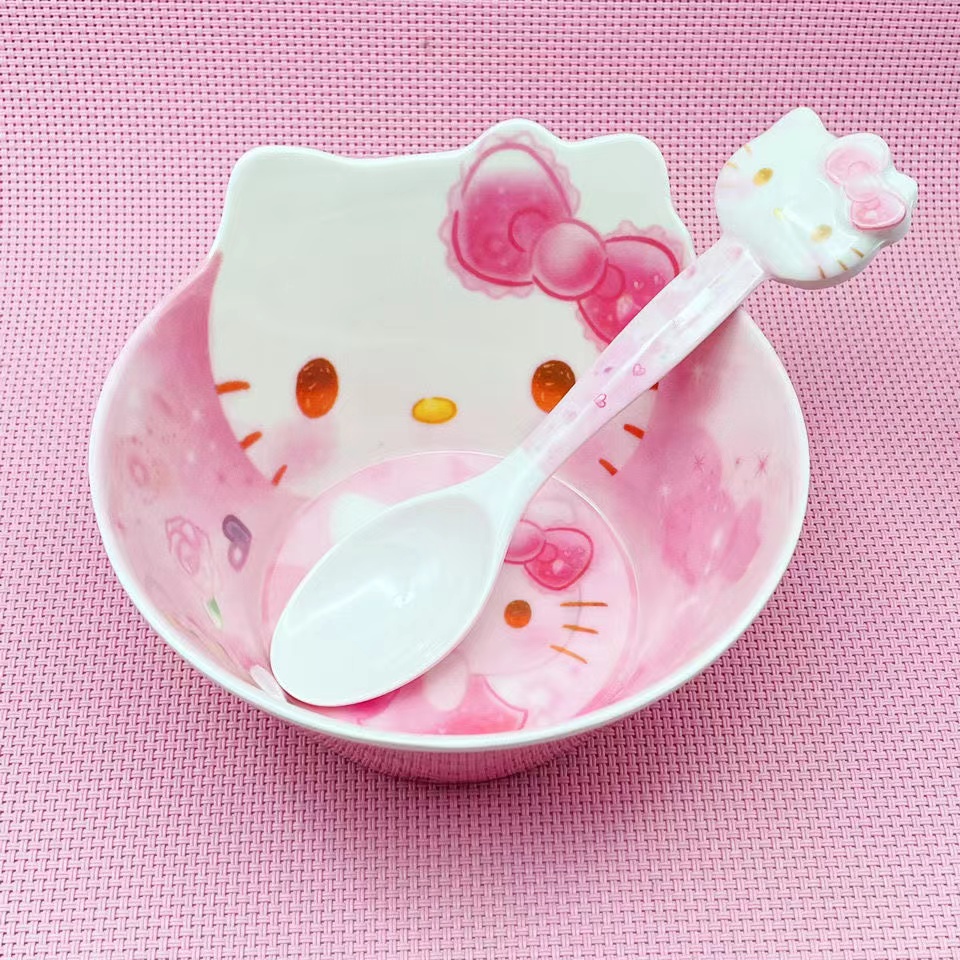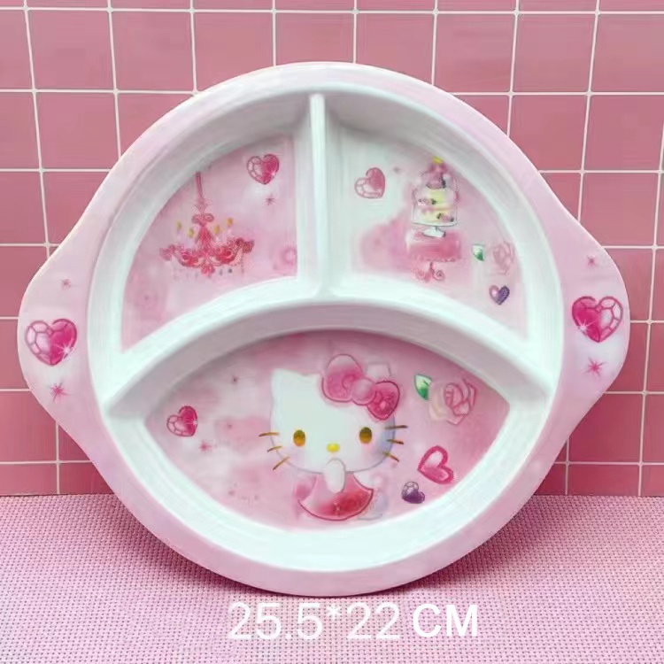 Congme Children Tableware Set Natural Non-toxic BPA Free Cartoon Hello Kitty Toddler Dinner Plate Kids Meal Plate Set