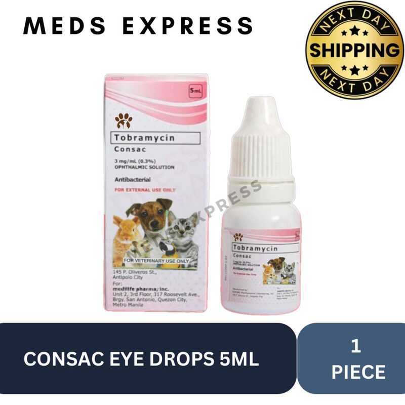 Consac Tobramycin Ophthalmic Solution Eye Drops 5Ml For Pets & Humns L 1 Piece 3A5