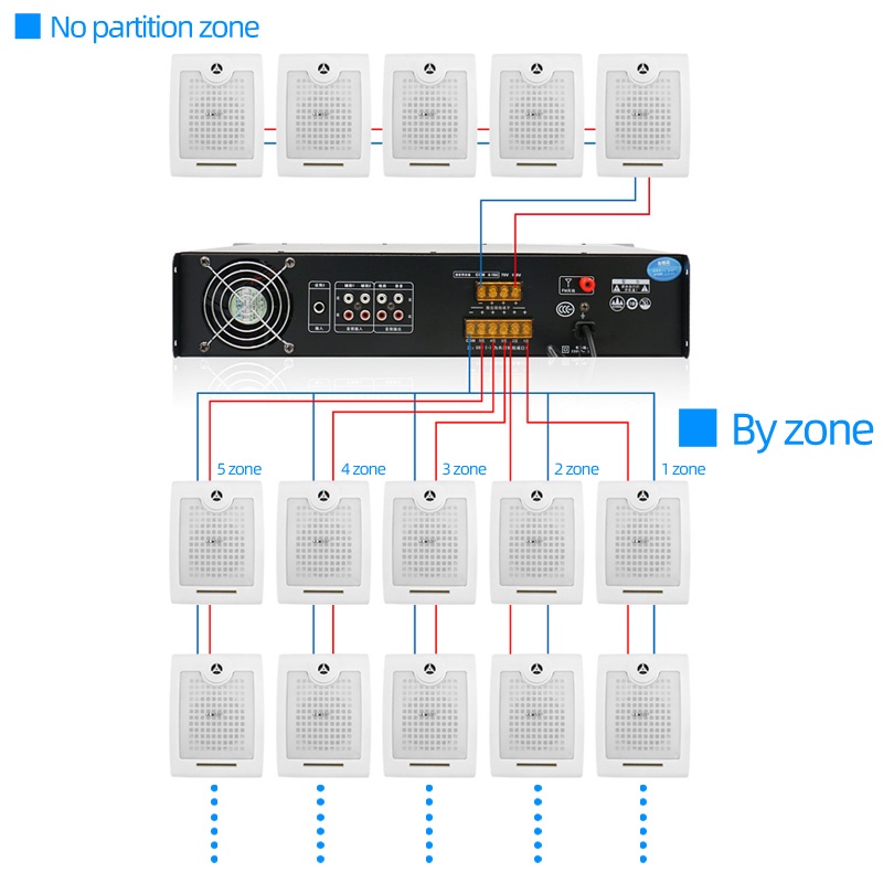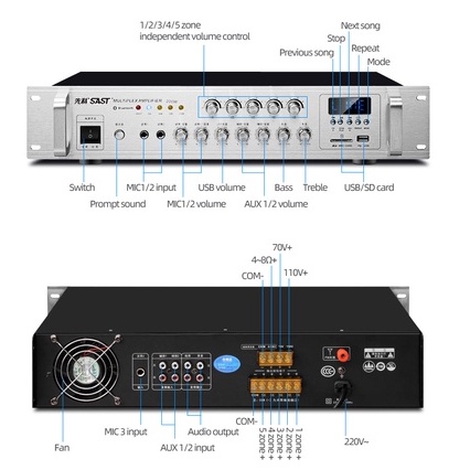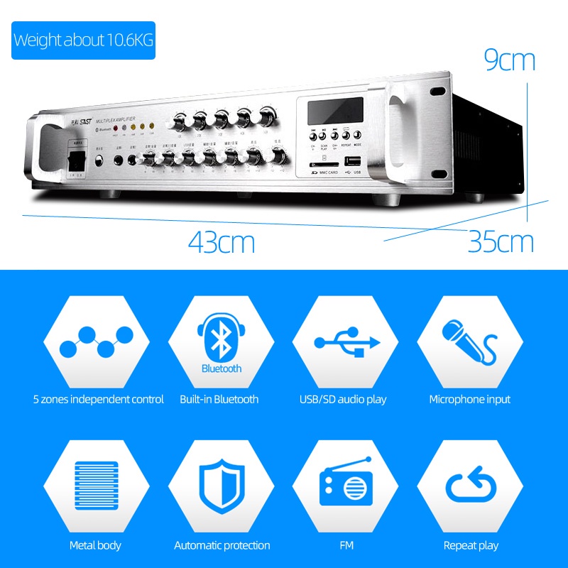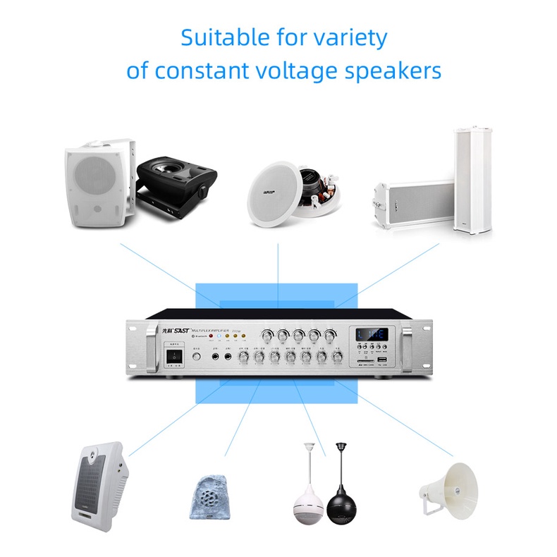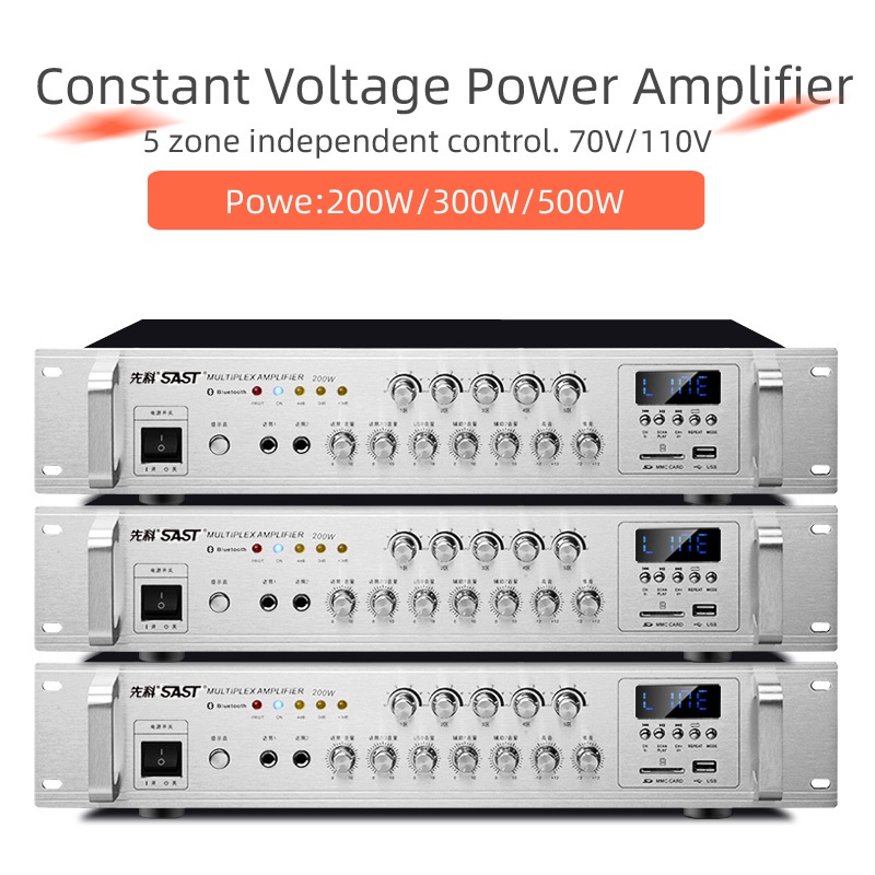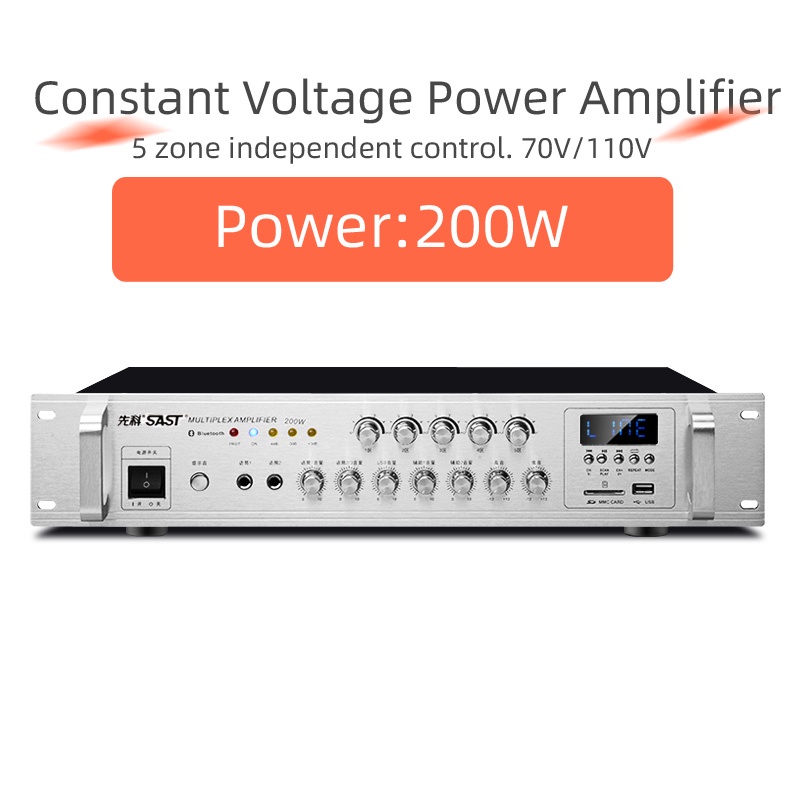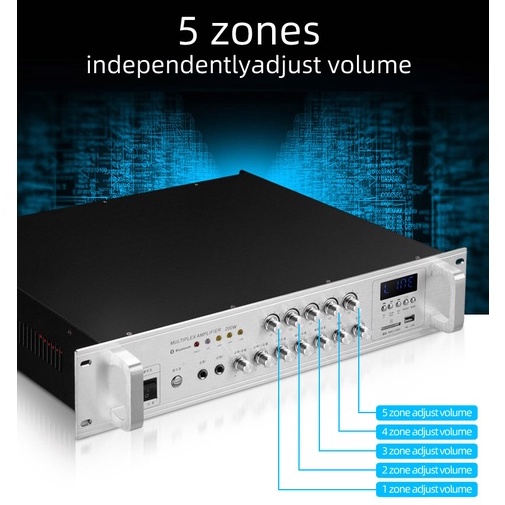 Constant Voltage Power Amplifier 5 Zone With Independent Volume Control 70V/110V out Speaker Commercial Class Background Music Public Address System,Bluetooth/USB,shops,home,park