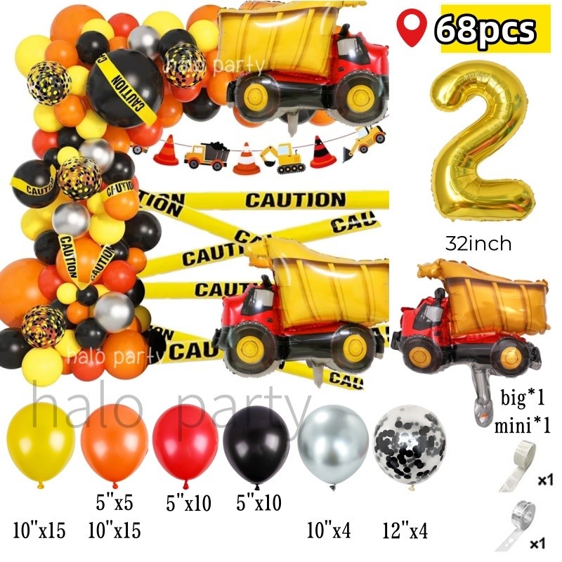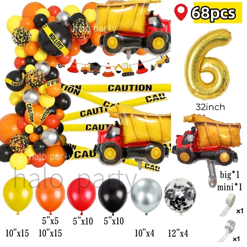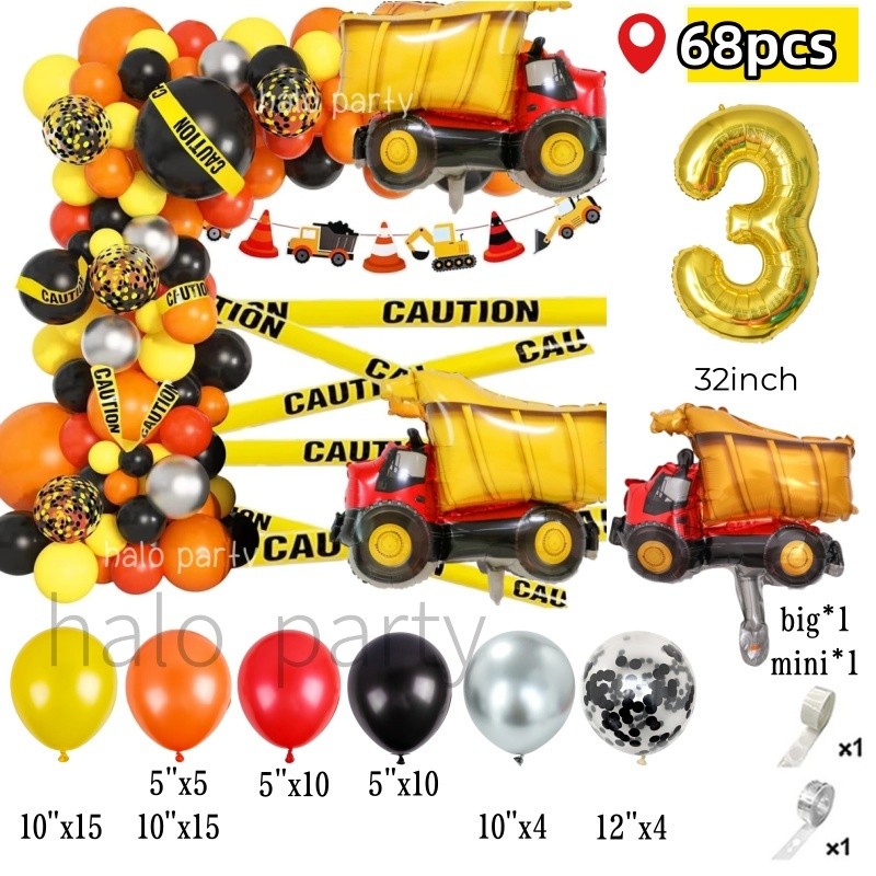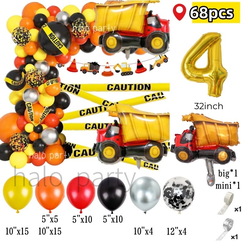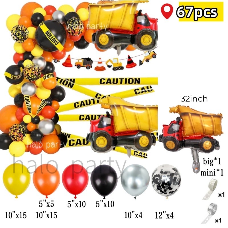 Construction Theme Balloon Garland Arch Kit Crane Truck Car for Boys Birthday Party Decorations