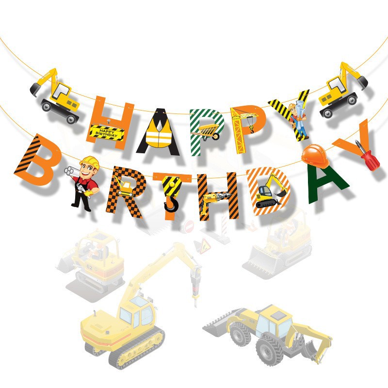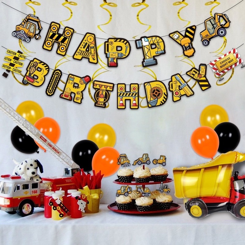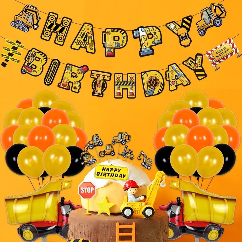 Construction Theme Party Engineering Vehicle Excavator Balloons Party Decorations Combination Kids Birthday Party Decor