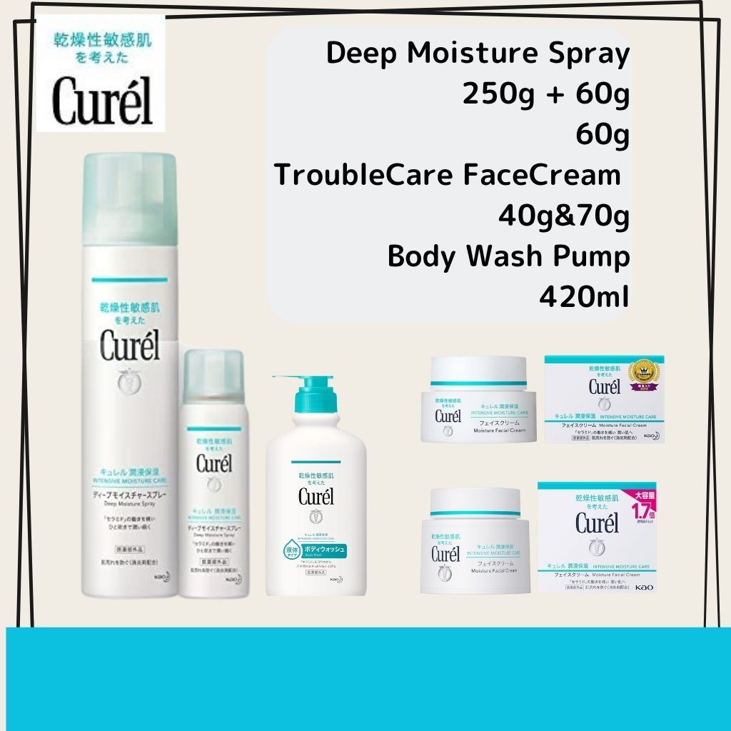 Curel Deep Moisture Spray 250g + 60g 60g TroubleCare FaceCream 40g 70g Body Wash Pump 420ml