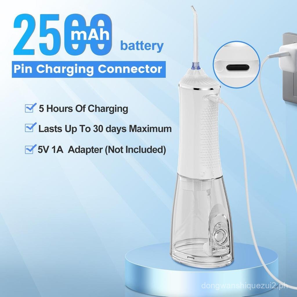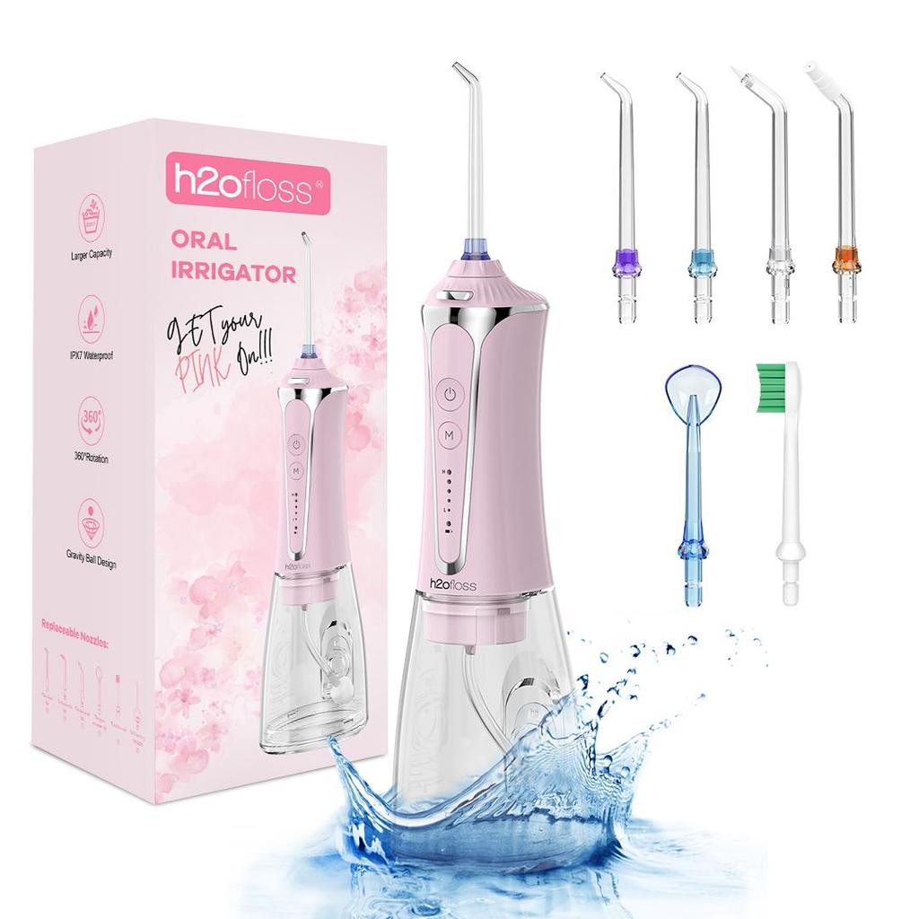 h2ofloss- Rechargeable Portable water flosser & Oral Irrigator – 300ML Water Tank, Whitening Tablets to Whiten Your Teeth, 5 Cleaning Modes, IPX7 Waterproof
