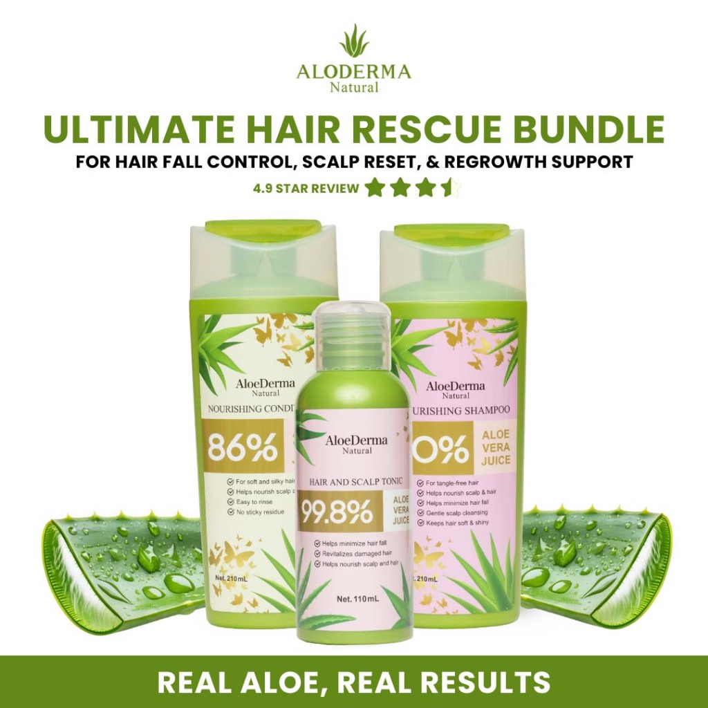 AloeDerma Ultimate Hair Rescue Bundle Shampoo, Conditioner, Tonic