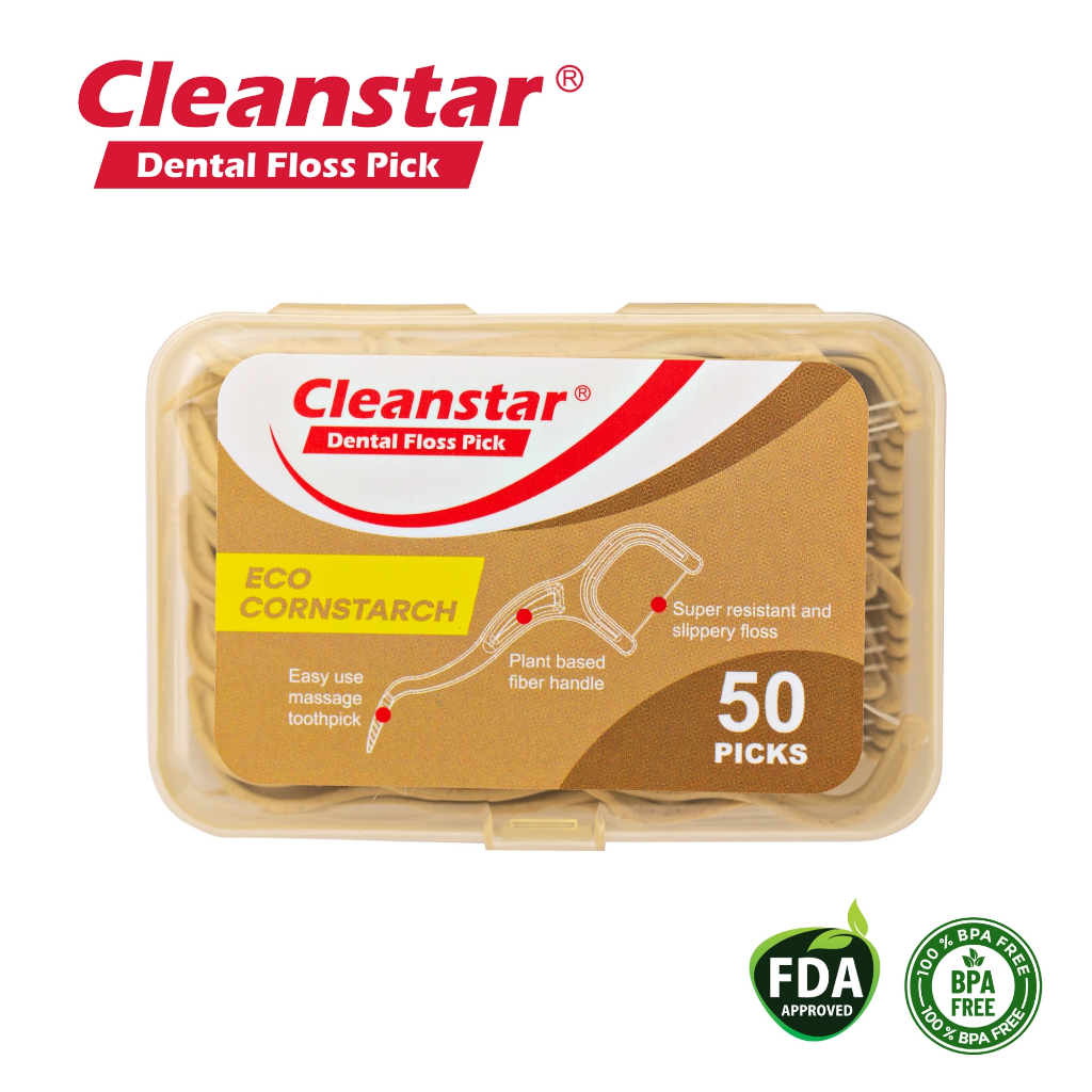 CleanStar Dental Floss Pick Eco Corn Starch Box 50pcs