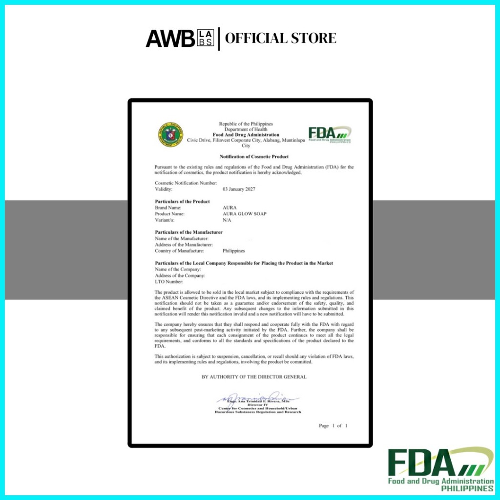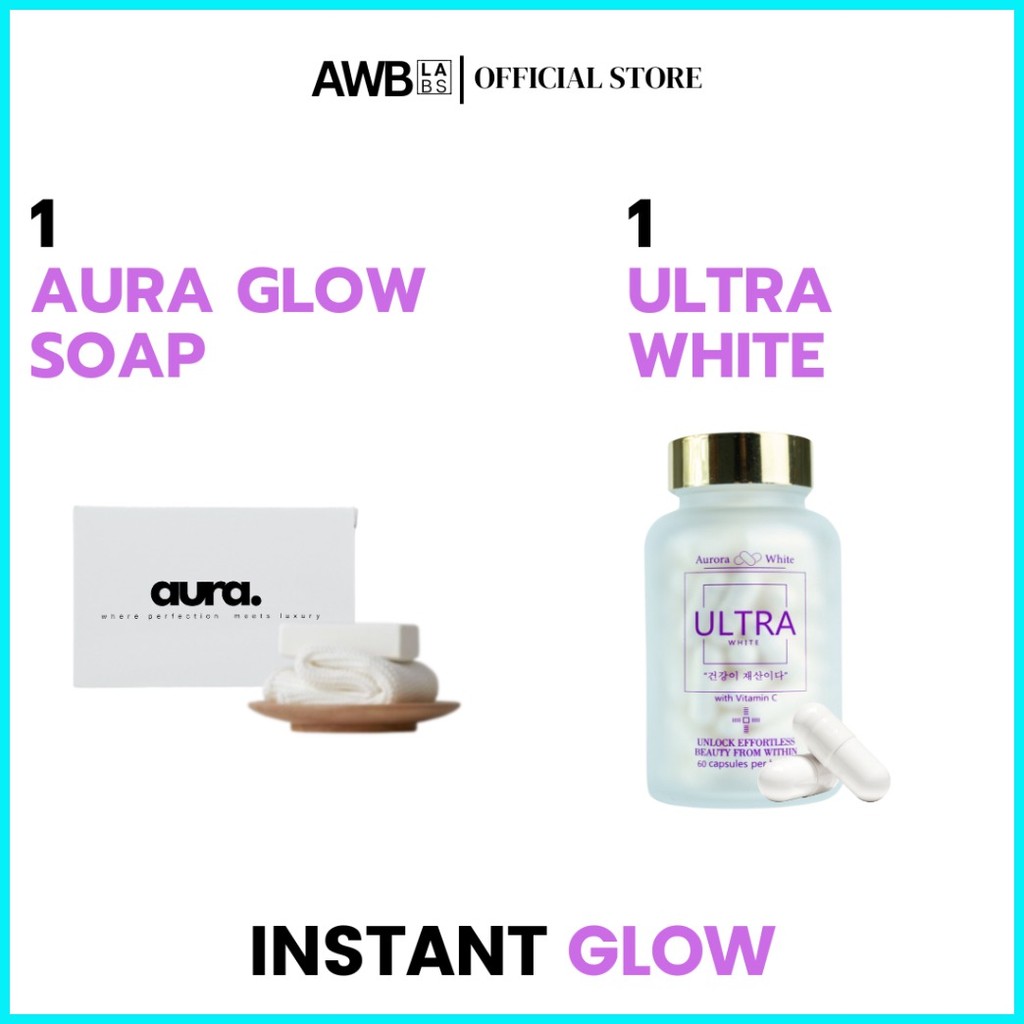 [ULTRA Glow bundle] 1 Ultra White L- Glutathione Antioxidant 1 Aura Niacinamide Brightening Soap