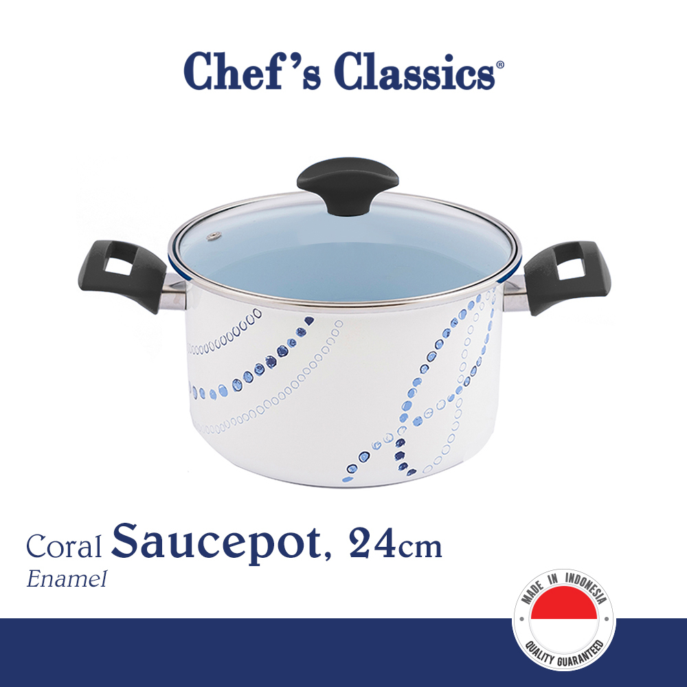 Chef's Classics Coral Enamel Saucepot, 24cm