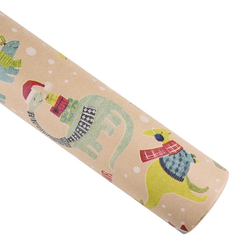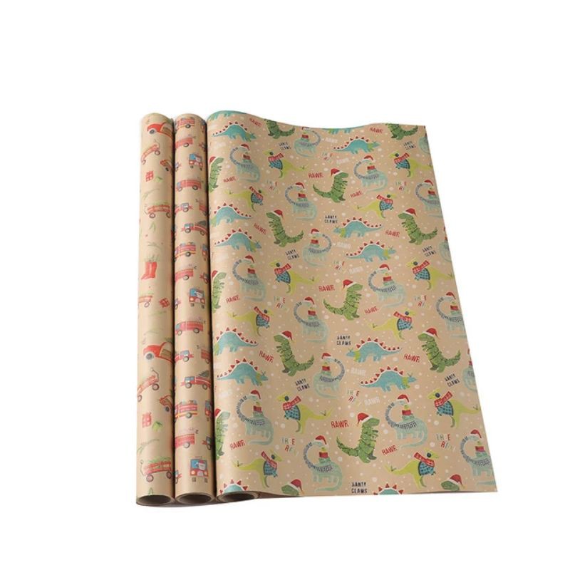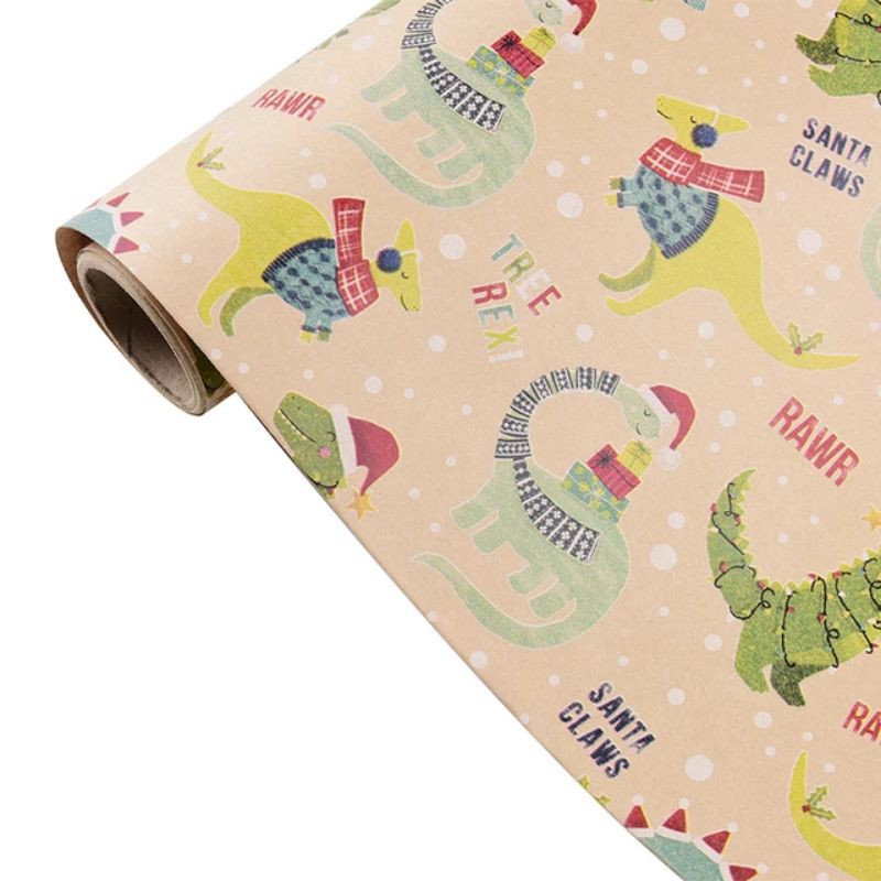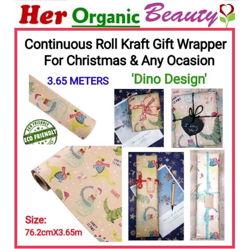 *Continuous Roll Kraft Gift Wrapper for Christmas & Any Occasion ("Dino Design") Wrapping Paper