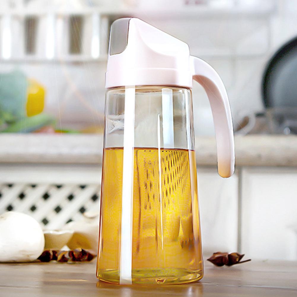 Cooking Oil Bottle Dispenser 300ml 630ml Glass Bottles with Handle Easy Pour Automatic Close