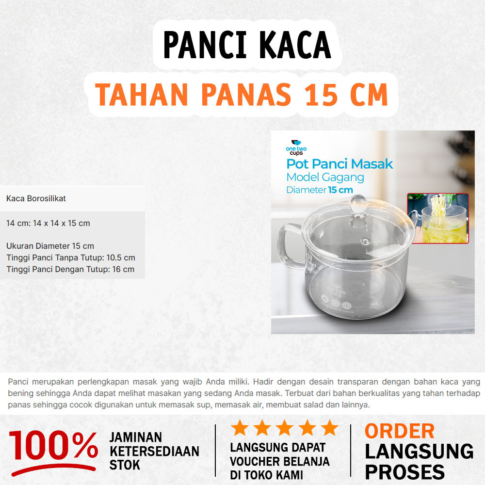 Heat Resistant Transparent Clear Glass Cooking Pot 15CM 15 x 15 x 10 cm - Transparent