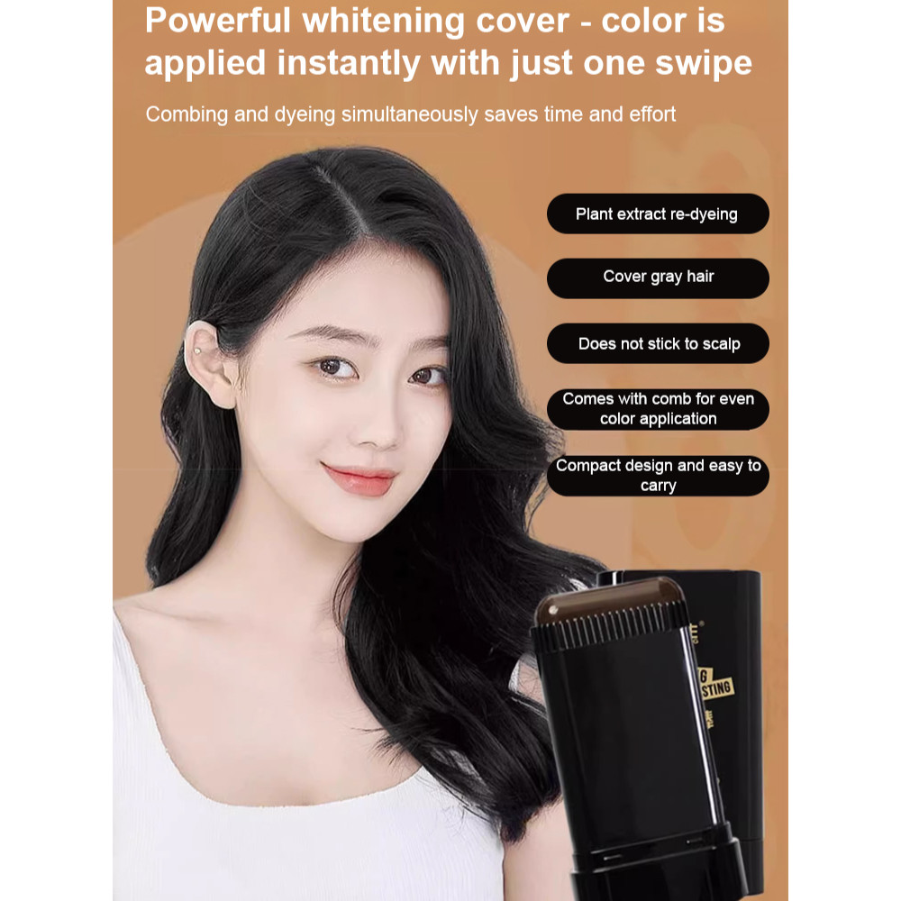 【Long-lasting/Natural Color】 Waterproof and Sweat-Proof Hair Dye Comb with Natural Tooth Design/ Instant Covering Nourishing Gray Hair/ Gentle on Hair/补染梳头二合一染发梳