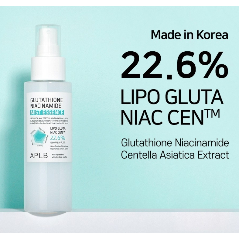 APLB Glutathione Niacinamide Mist Essence 105ml | Fine Spray Hydrating Face Mist | Soothing Daily Skin Care