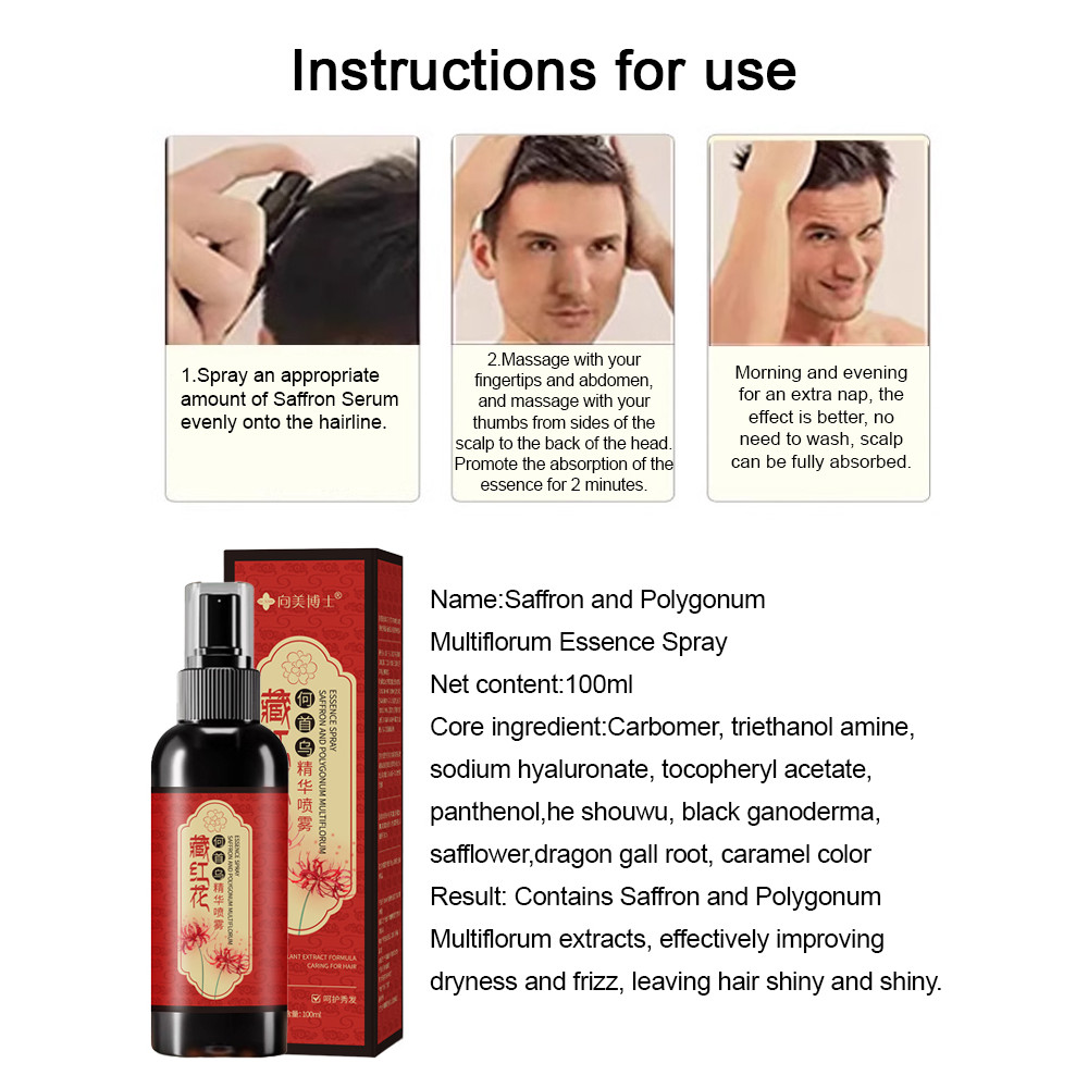 Hair Growth Spray/Saffron Hair Growth/Black Hair Tonic from White to Black Tonic Natural Anti Hair Loss Fast Hair Growth Hair Growth Shampoo Hair Care Product
