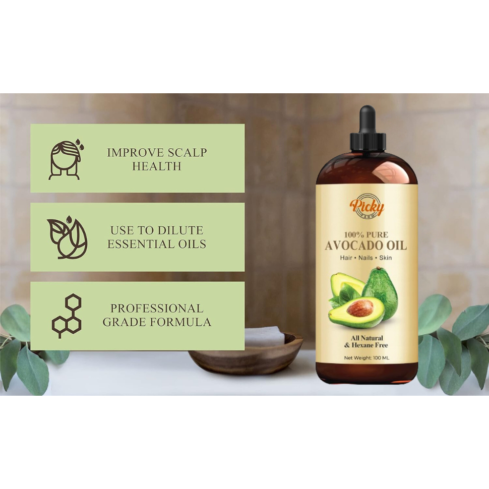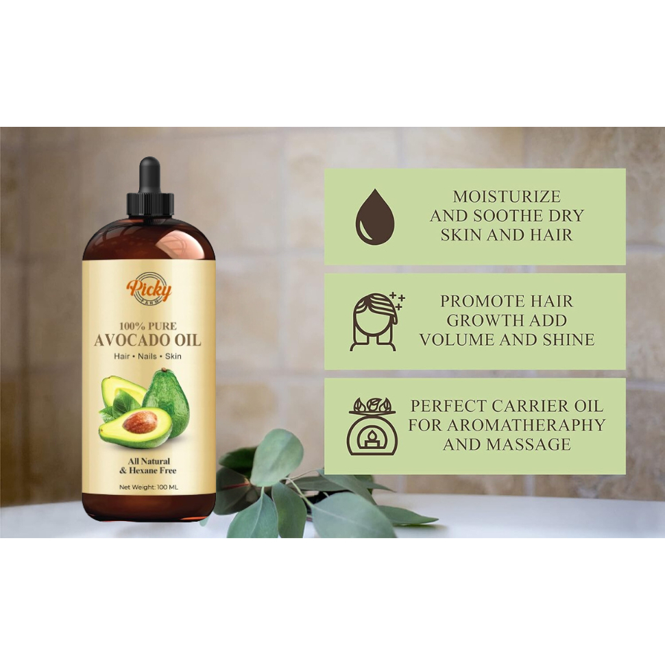 Avocado Oil 100% Pure and Natural Oil for Skin & Hair, Cold-Pressed and Hexane-Free
