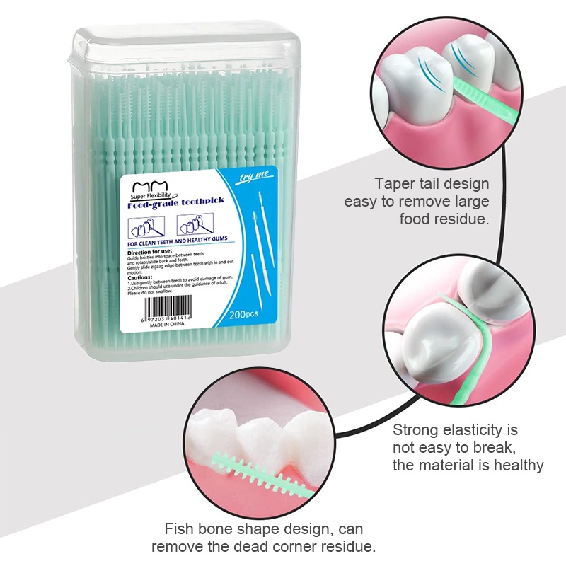 200pcs Double Head Dental Floss Picks with Case Soft Strong Waxed Floss Gentle Interdental Cleaners