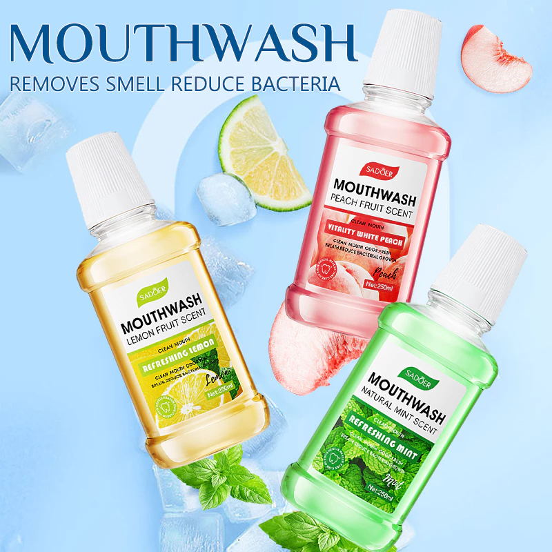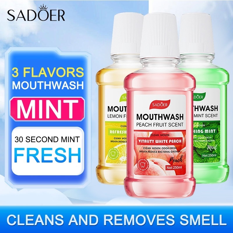 Sadoer Mouthwash Water 250ml Lemon/Mint/Peach Flavor Oral Care Mouth Fresh Breath Alcohol-Free