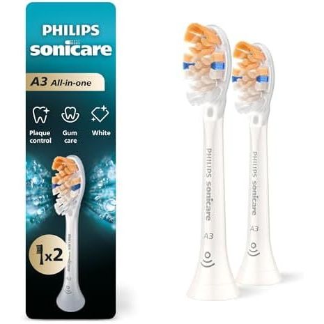 Philips Sonicare A3 All-in-One - Genuine Replacement Electric Toothbrush Heads, Black, 2 Pack, HX9092/95