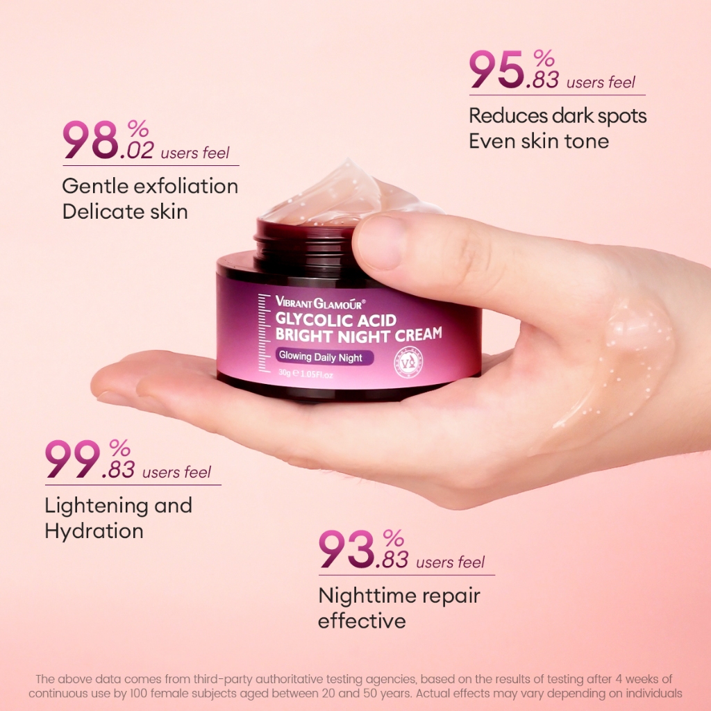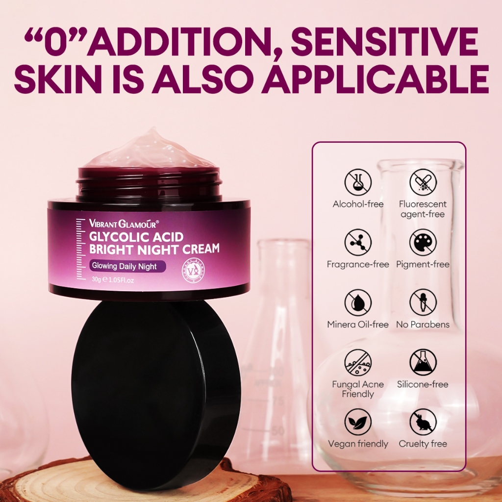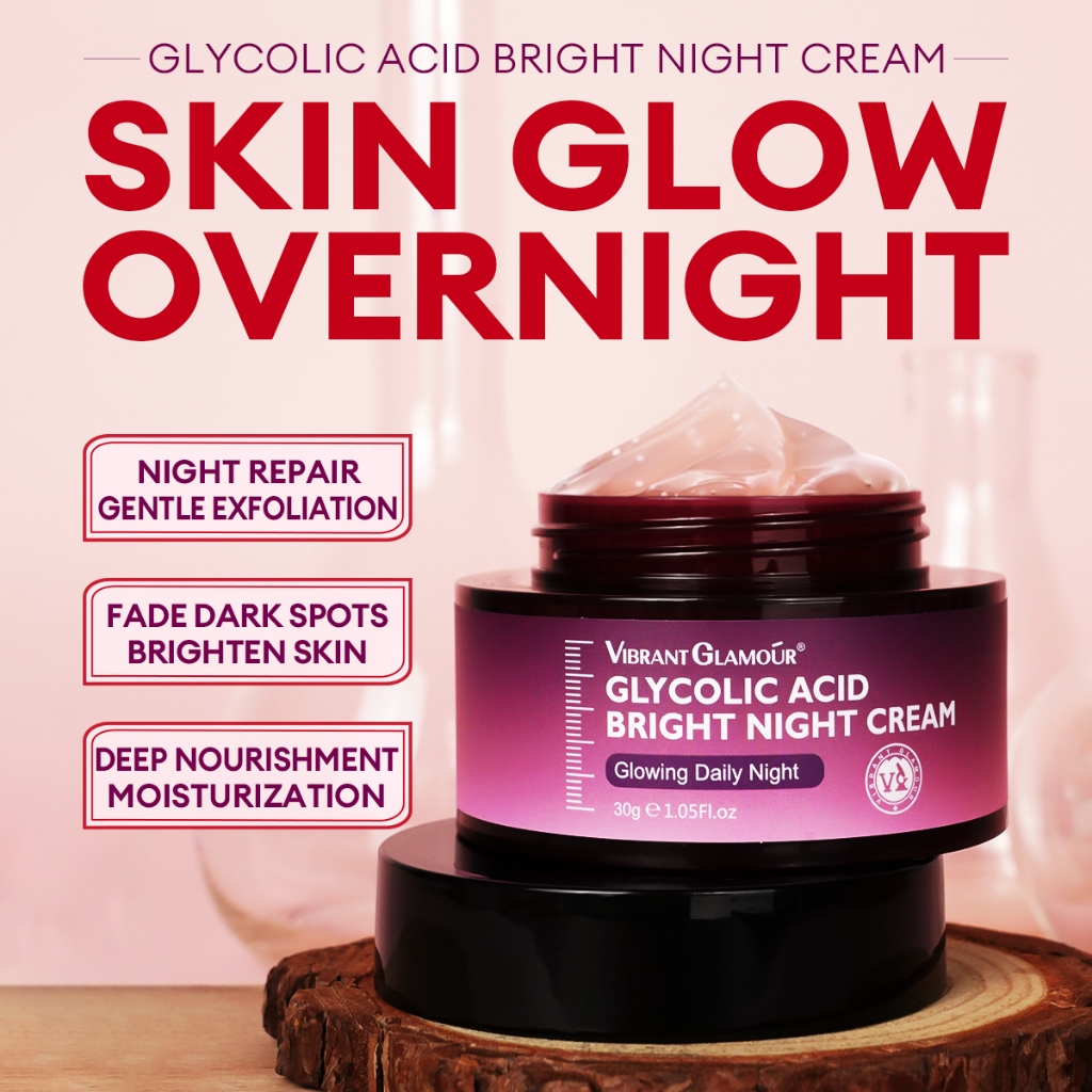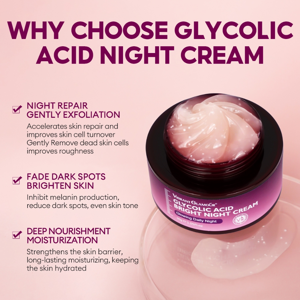 VIBRANT GLAMOUR Glycolic Acid Renewal Night Cream Gentle Nighttime Exfoliating Fade Dark Spots Fine Lines Repair Hydrate and Brighten Skin for Dull and Rough Skin 30g