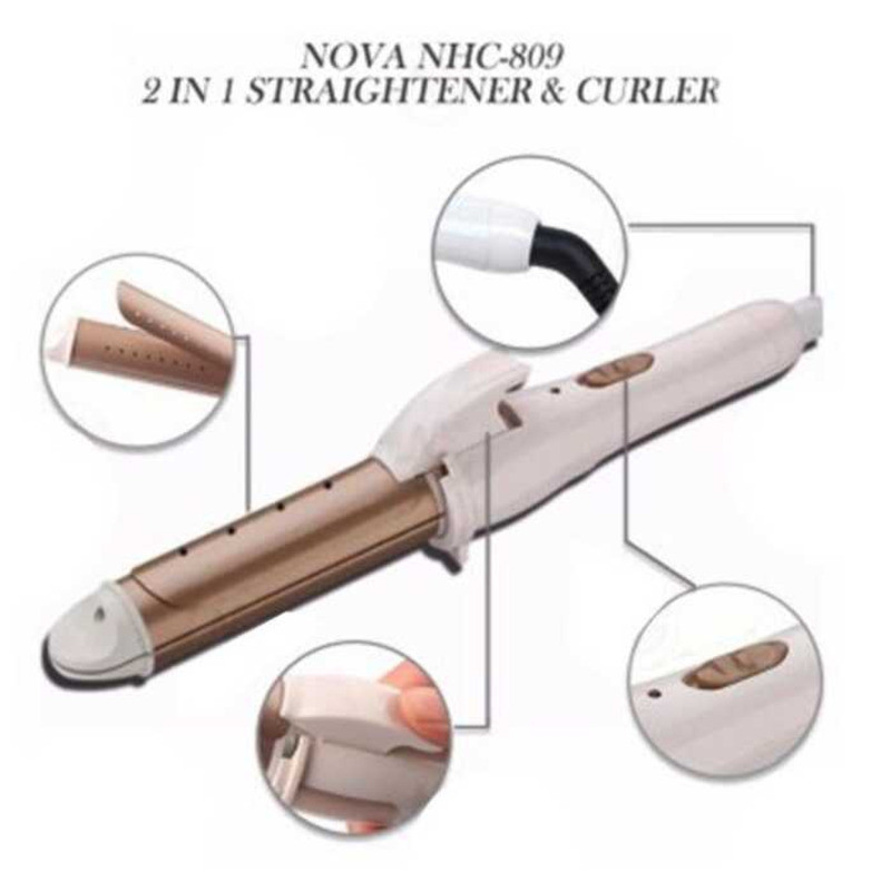 NOVA 809 2 In 1 Hair Straightener And Curler Iron Brown 177