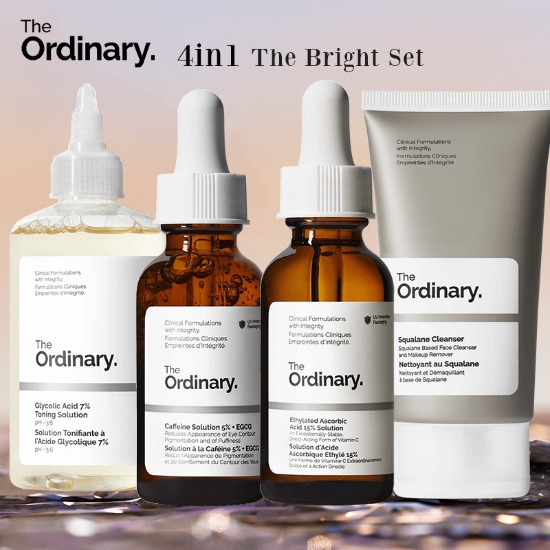 The ordinary set Squalane Cleanser+Caffeine serum+Vitamin C+Glycolic Acid 7% toner the Bright Set