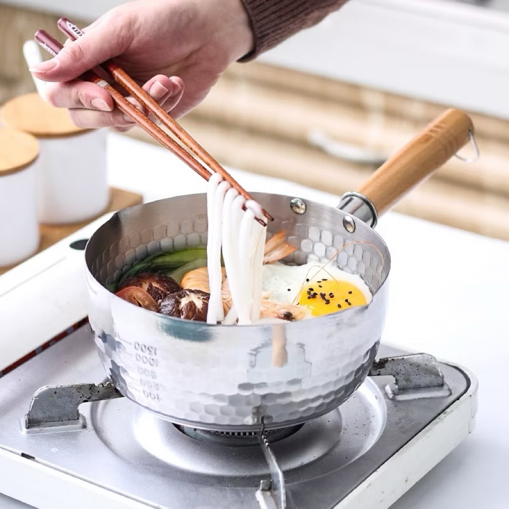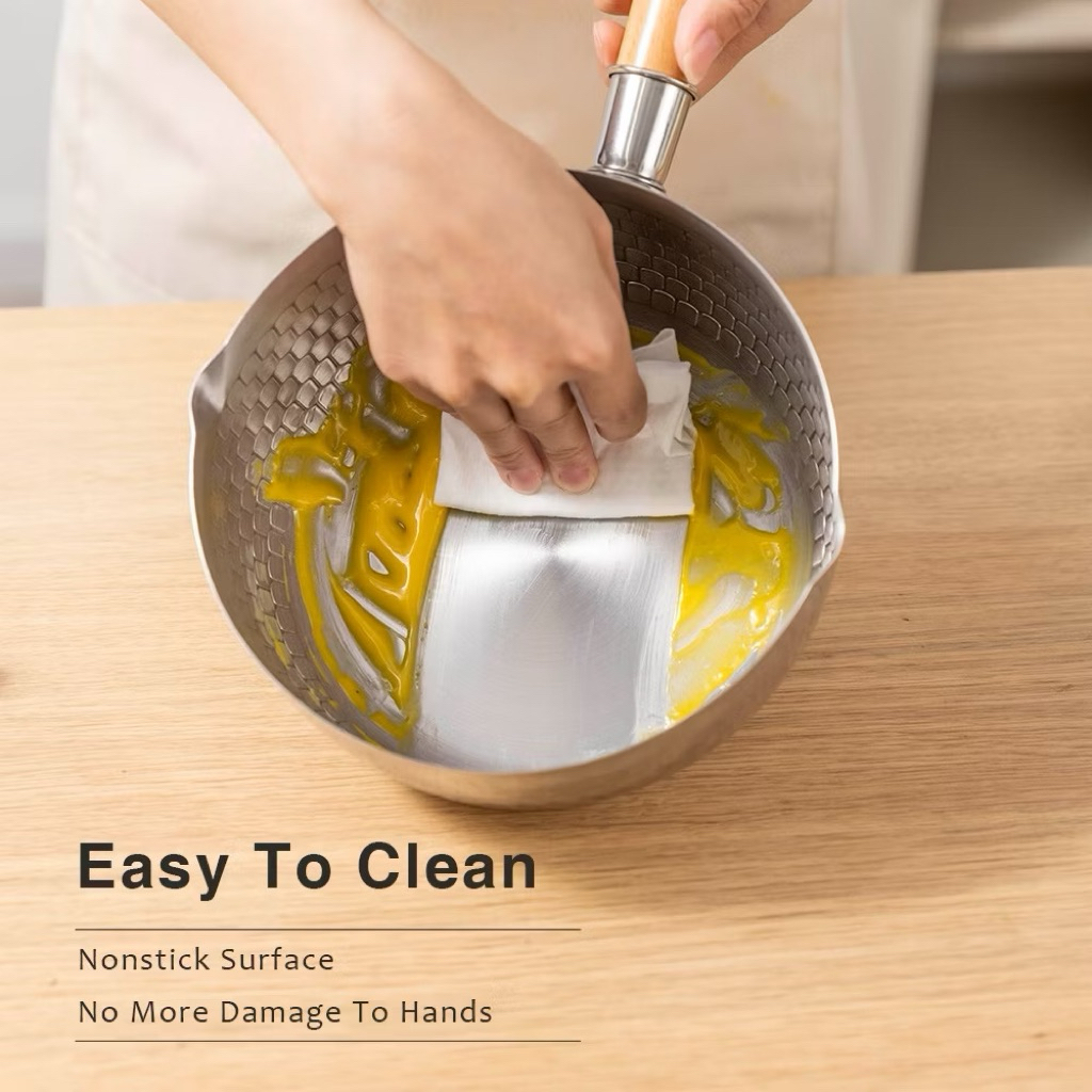 Stainless Steel Pot Wooden Handle Non-Stick Milk Pot Japanese Style