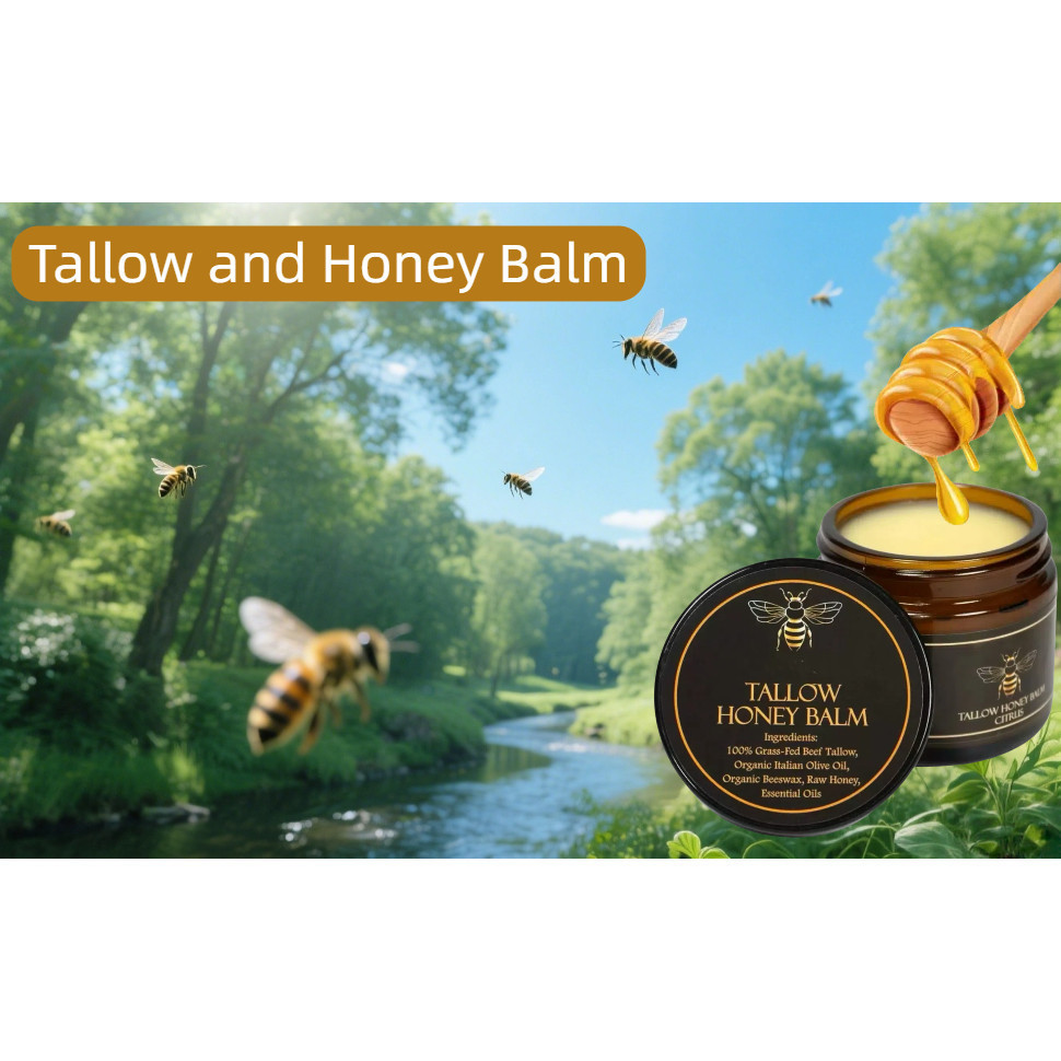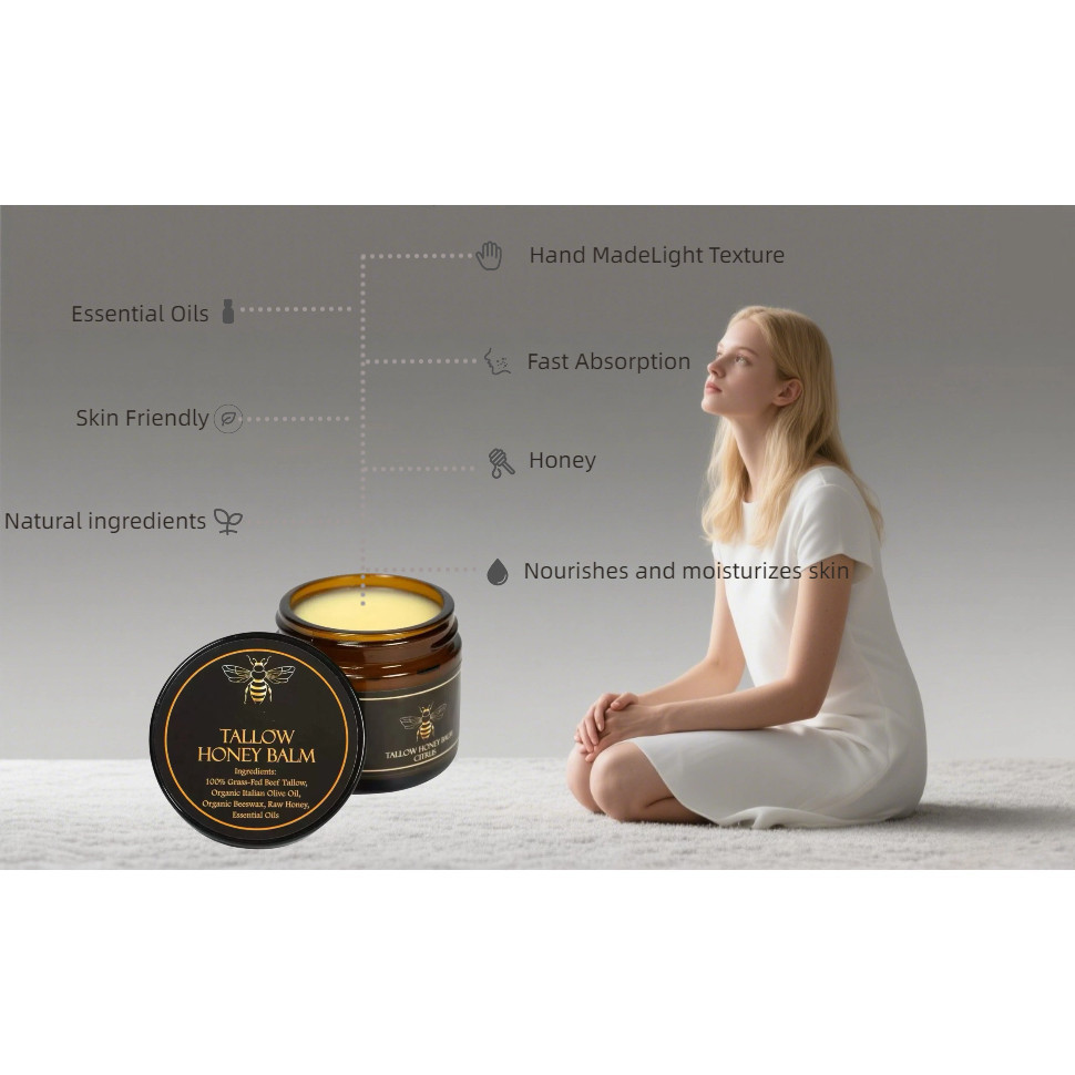 Beef fat honey paste,Beef tallow is used in skin care,Contains raw honey,Has natural soothing and moisturizing properties。 Suitable for face and body。 (1,Fragrance-Free)