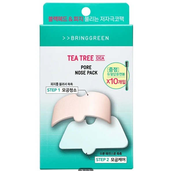 [BRING GREEN] Tea Tree Cica Pore Nose Pack (5 sheets) | Gentle Blackhead Dissolver | 2-Step Pore Care | Soothing & Hydrating | Vegan Certified