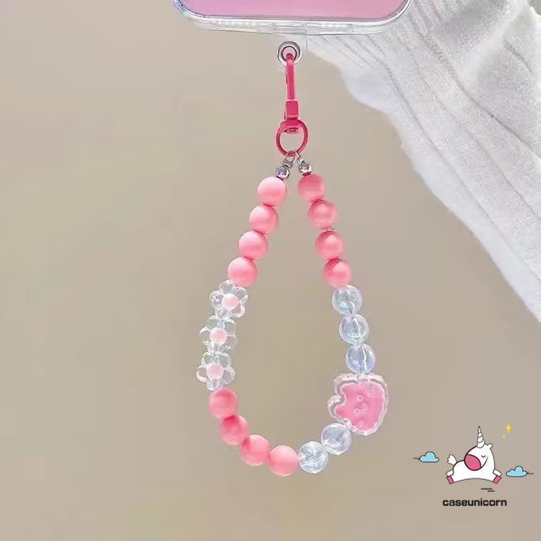 Cool Butterfly Loving Heart Mobile Phone Chains For Charm Girls Black Acrylic Pearl Beaded Lanyard Fashion Jewelry Gifts Telephone Accessories Bracelet Keychain Phone Lanyard