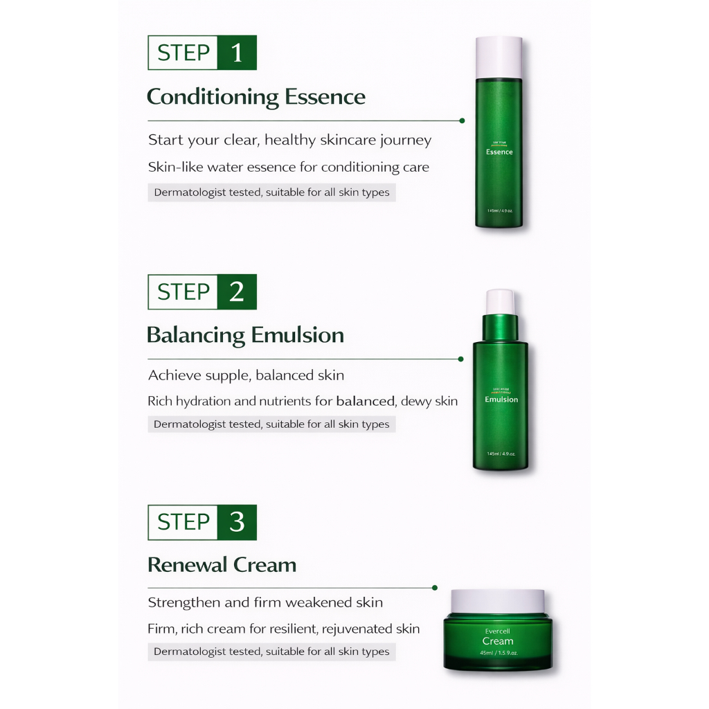 Evercell Cell Vital Skincare Set | Essence, Emulsion & Cream | 3-Step Care